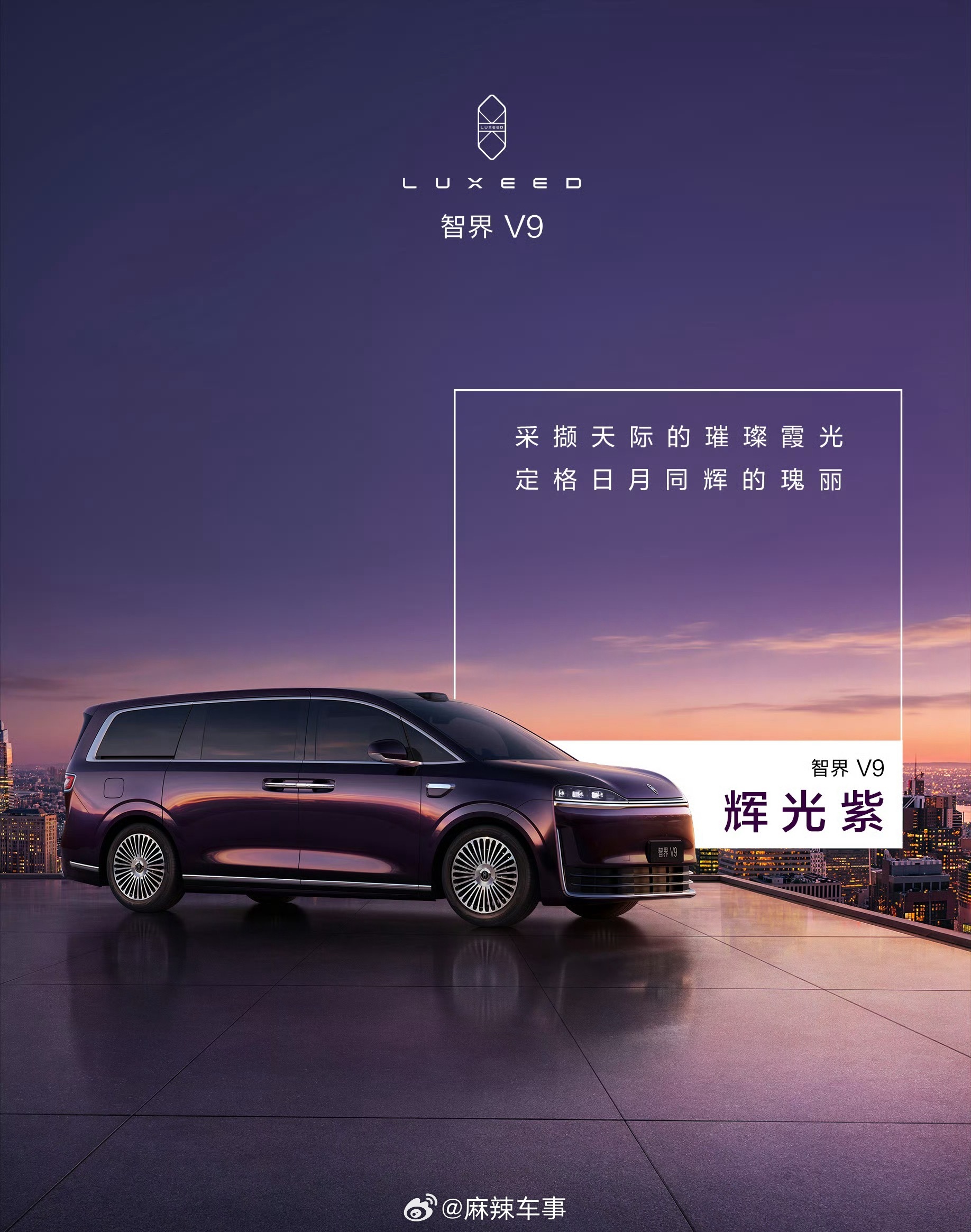 智界V9首发四款车色 智界V9首发四款车色正式亮相,分别为辉光紫、深海蓝、雪域白