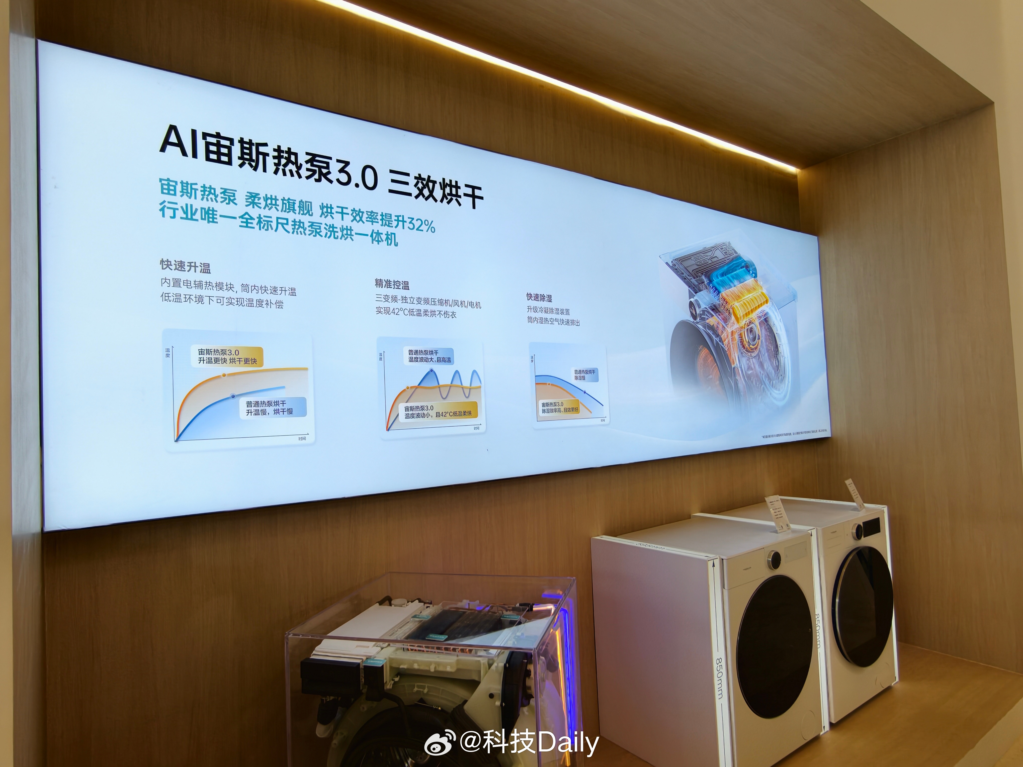 海信的洗衣机使用了极为先进的AI宙斯热泵3.0三效烘干,烘干效率高更到位,结合AI调度可以确保温度刚刚好,对衣服最友善。