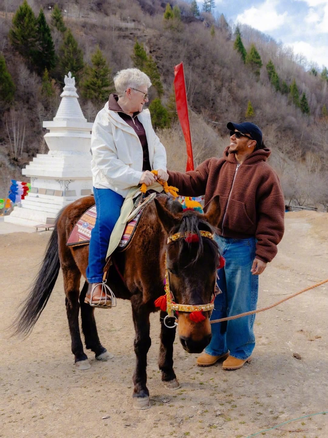 2026年F1中国大奖赛前夕,刘易斯·汉密尔顿带着母亲卡门·拉巴莱斯蒂尔去四川九寨沟,骑马徒步探访藏寨,领略自然风光了。