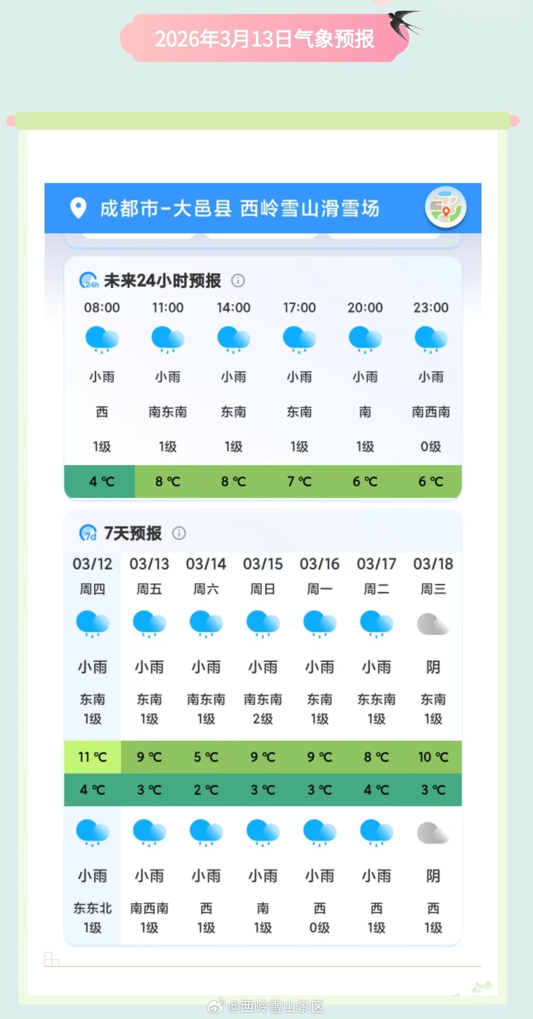 西岭雪山3月13日(周五)气象预报#西岭雪山#