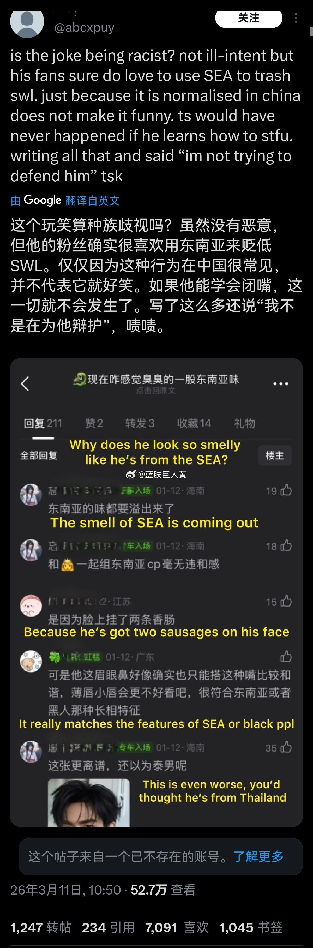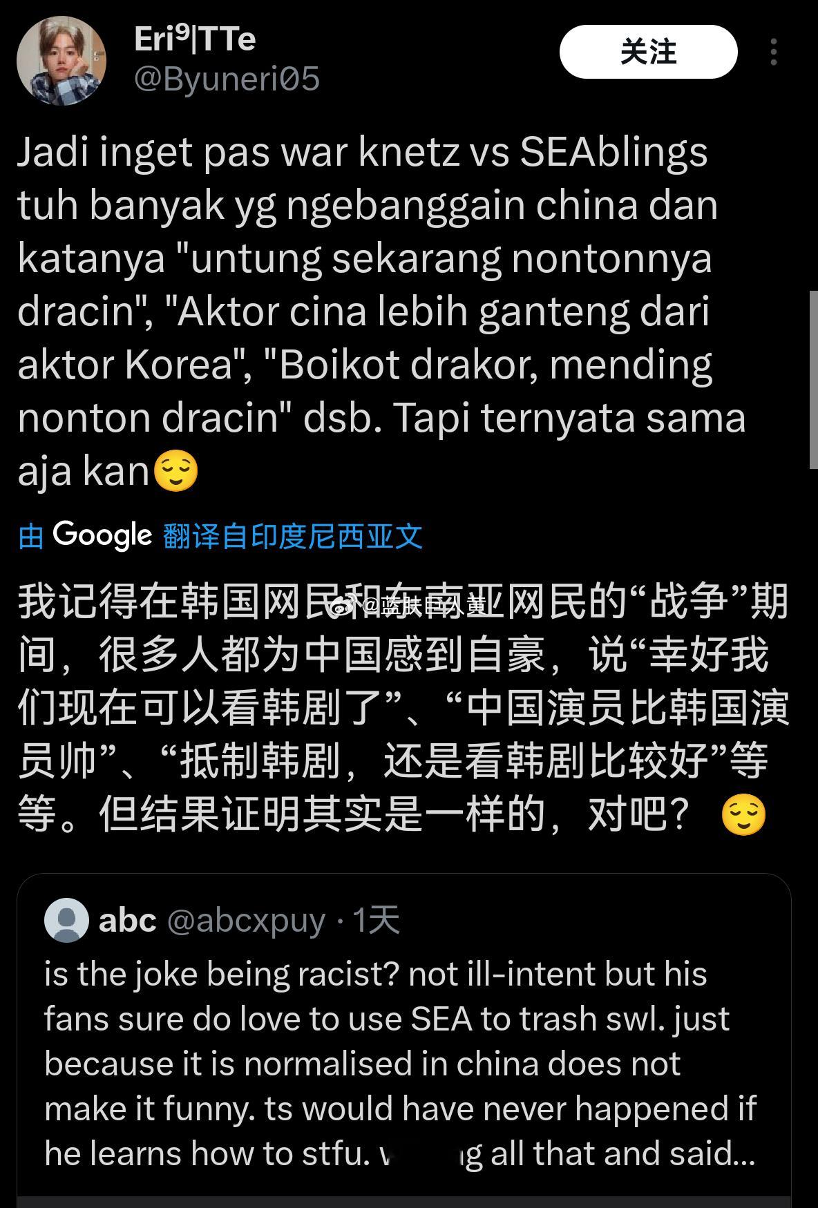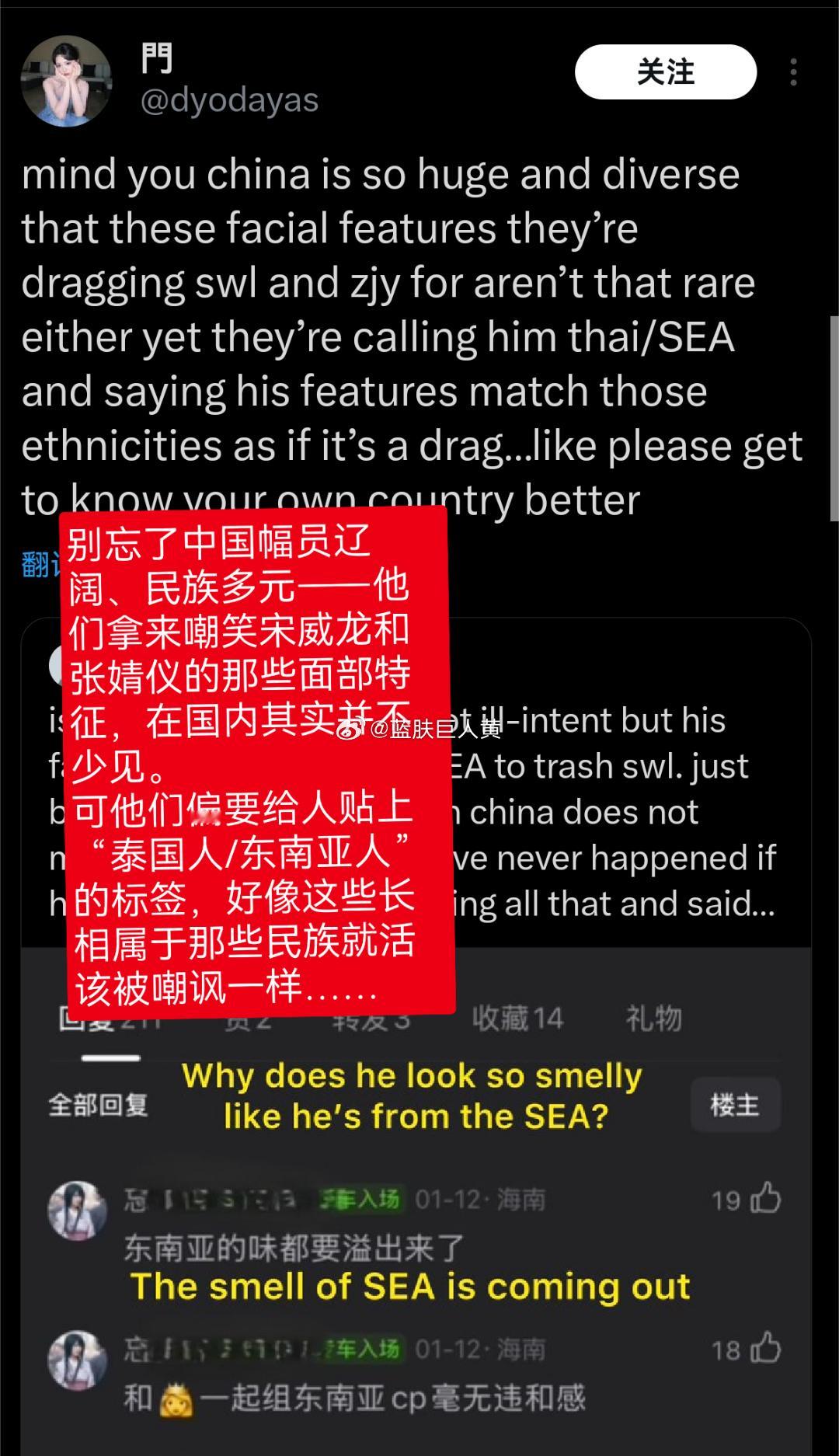 推特上的东南亚网友扒出了豆瓣粉圈用“东南亚味”形容对家中国男星的帖子,现在部分东南亚网友的怒火已经扩大到了全体中国人头上……