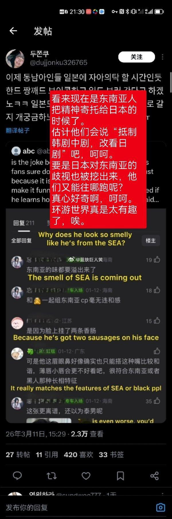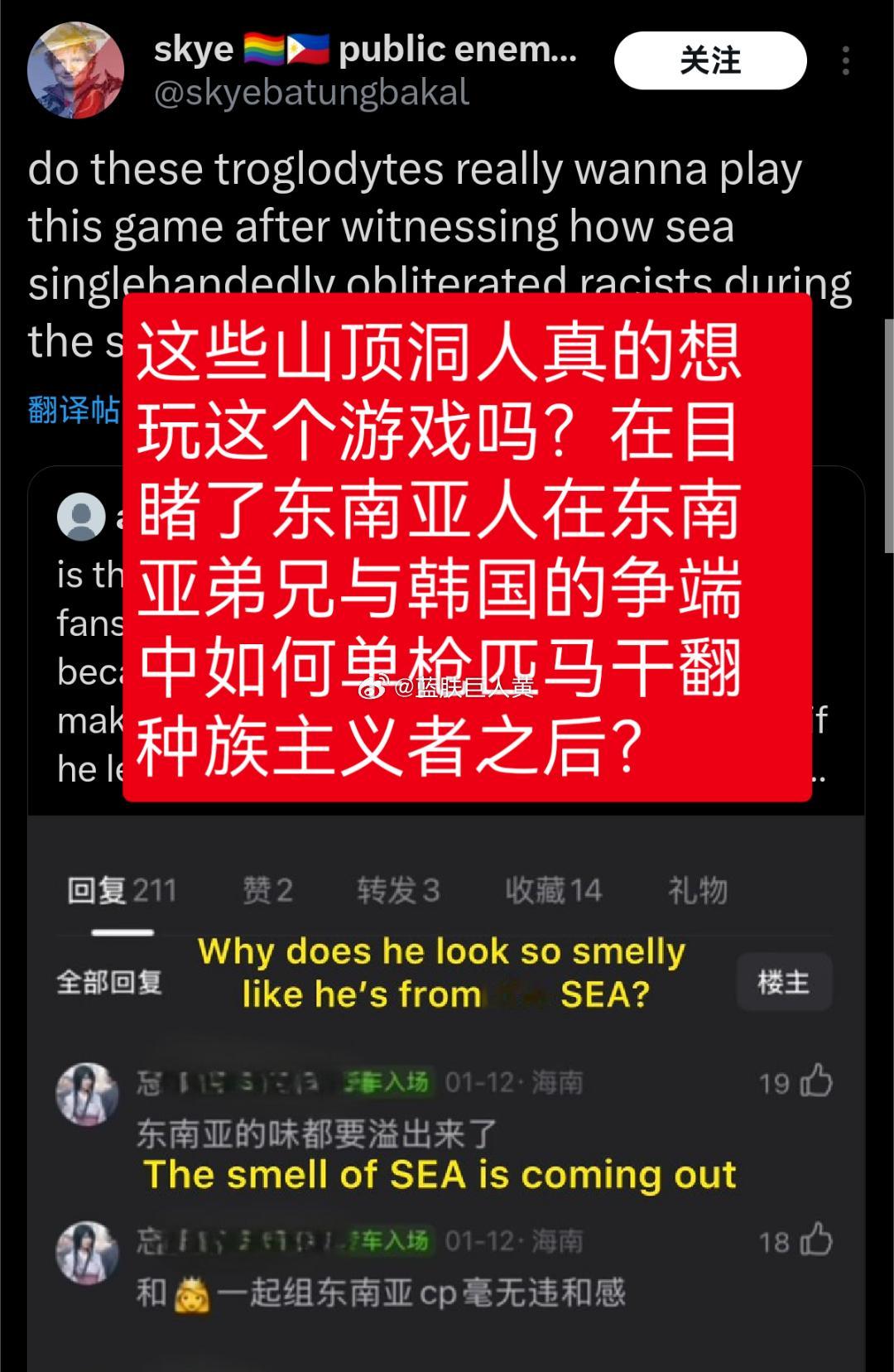 (前段时间,东南亚人刚因为一点小事,集体出动手撕韩国,现在战意未消,可能想要寻找新的目标了)