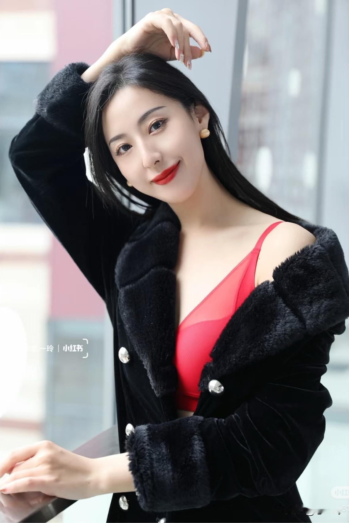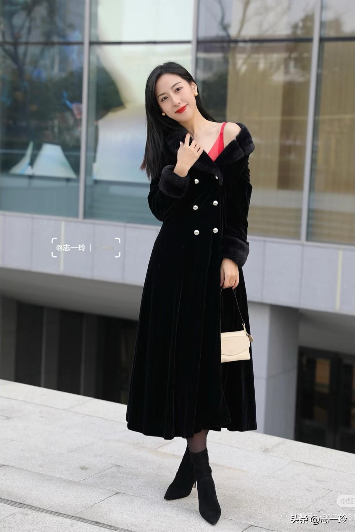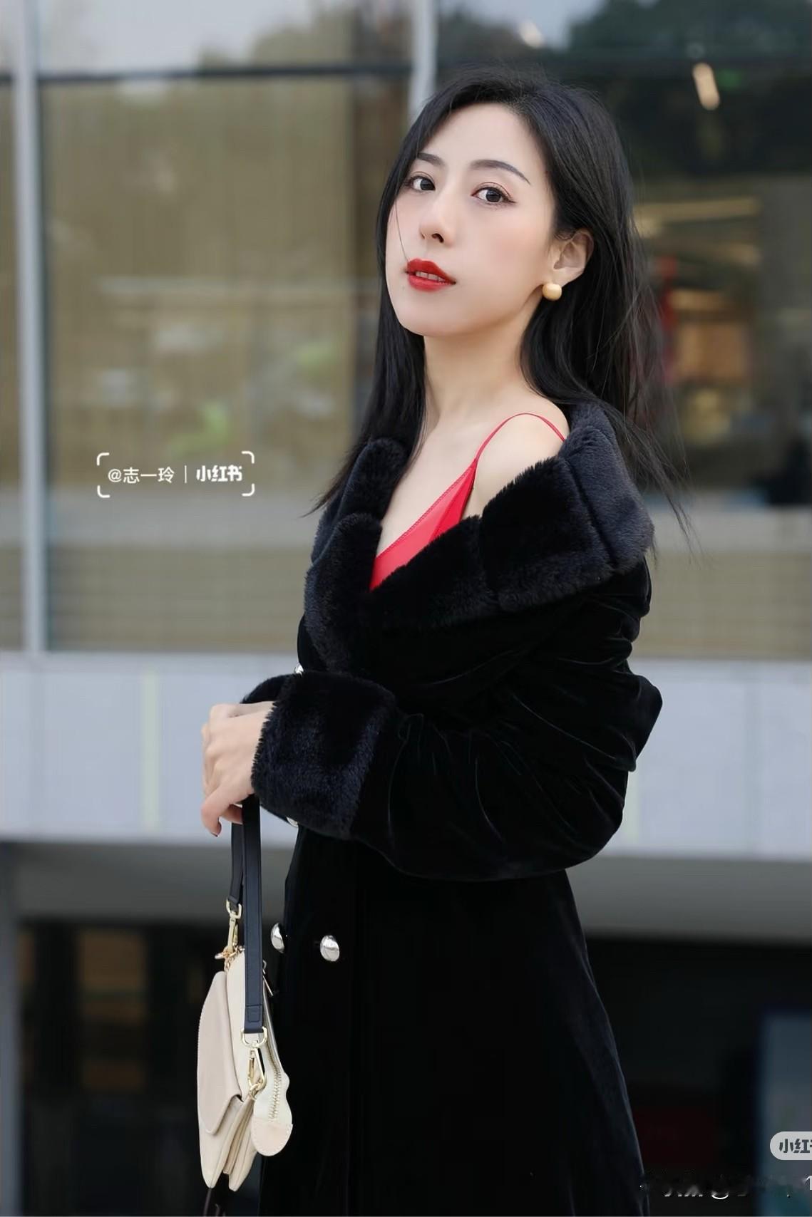 春日穿搭指南:黑色毛绒外套+红色内搭,温暖又时尚!