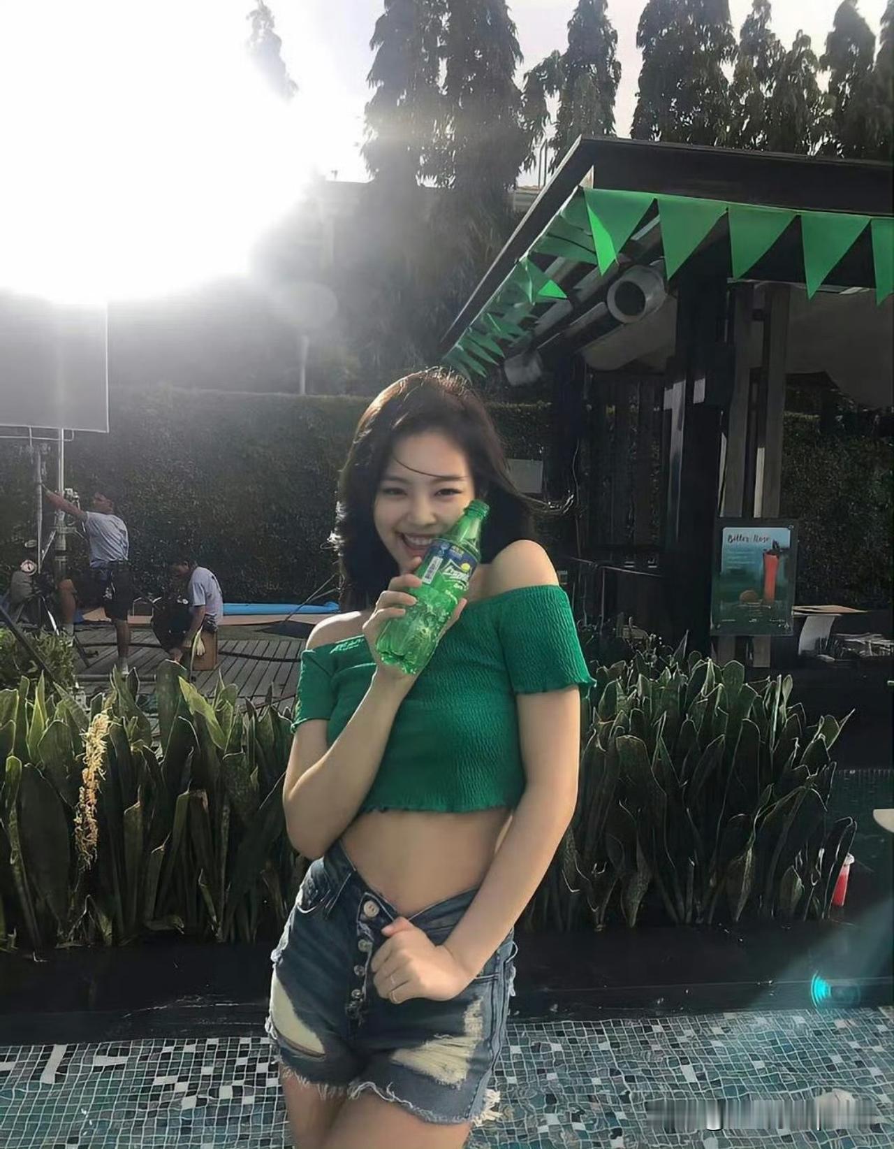 哇Jennie这组雪碧照真的绝了! 当年看到第一眼就被惊艳到,Jennie那种清冷又带着点奶凶的气质,配上夏日汽水的清爽感,简直完美。 绿色小恤配牛仔小短裤,拿着雪碧对着镜头那个眼神,又甜又酷,确实是无数人的青春记忆。 现在看依然不过时,反而有种复古胶片感,难怪能在外网再翻红一波。