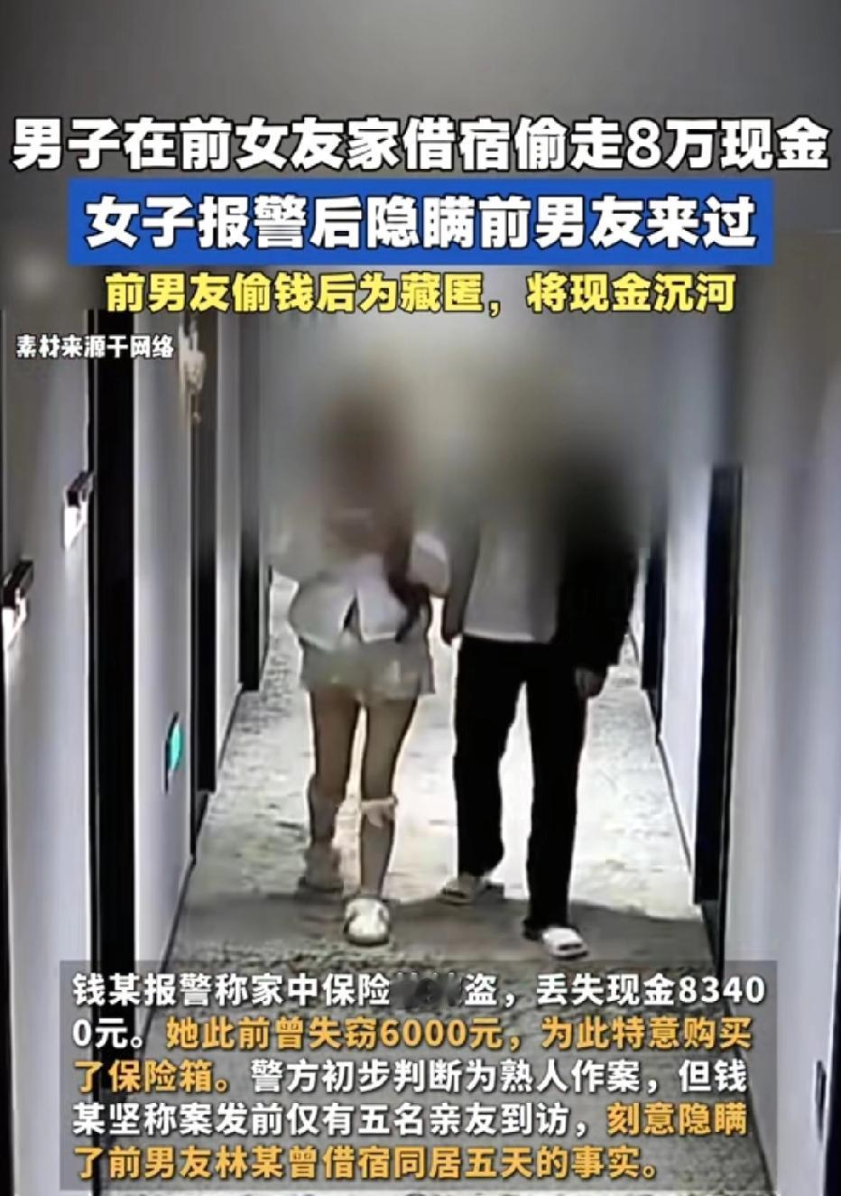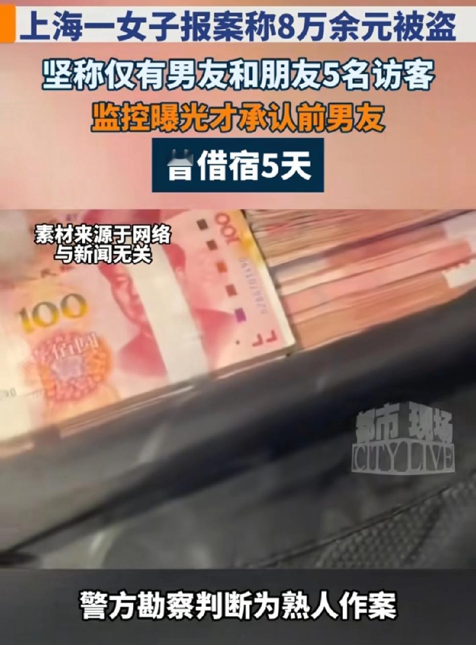 上海,女子将8万元现金放家中的保险柜,不料,她发现现金和保险柜都不见了,女子报警,一口咬定只有现男友和朋友来过。不料,警察却发现女子隐瞒了前男友来过,两人还同居5天,结局让人意想不到。 钱女士到现在都不敢相信,自己亲手买的保险柜,也被偷了。 平时放保险柜的客厅角落,空荡荡的,连个柜子影子都没剩。 8万多块现金锁在里面,那是她省吃俭用攒了好久的全部积蓄,现在连柜带钱全没了! 钱女士当时就瘫坐在地上,又急又怕,哭着跑回家翻来翻去,可保险柜就像人间蒸发了一样,一点痕迹都没留。 之前,她放家里的6000元不见了,所以才买保险柜,本以为安全,没想到还是被偷。 钱女士第一时间报了警,报警时还咬着牙说:“警察同志,我肯定知道是谁!这段时间只有我现任男友和一个朋友来过我家。” 她笃定得很,甚至没多想其他可能,一心想把嫌疑人锁定在这两个人身上。 可她不知道,自己这句话里藏着的秘密,很快就会让真相彻底反转。 民警调查发现,能这么悄无声息搬走沉重的保险柜,肯定是对家里环境特别熟悉的人。 按照钱女士的说法,调查重点本该放在现任男友和朋友身上。 可民警办案讲究严谨,没有立刻下结论,而是先去调了小区和楼道的监控。这一调,瞬间发现了不对劲。 监控画面里,一个陌生男子的身影反复出现在钱女士家门口,不是钱女士说的那两个人,而是她的前男友林某! 更让人头皮发麻的是,林某的行动轨迹特别反常。在钱女士外出的日子里,他多次从钱女士家里拎出好几个物品袋,脚步匆匆地离开小区。 等民警拿着监控证据找到钱女士,问她为什么隐瞒林某到访的事时,钱女士的脸瞬间白了,眼泪唰地就下来了。 原来,钱女士和林某早就分手了,可两人一直藕断丝连,根本没断干净。保险柜失窃前,林某主动来找她,两人居然在她家里同居了整整5天。 钱女士之所以隐瞒这件事,一是怕现任男友知道了生气。 她本以为把嫌疑甩给现任男友和朋友,就能蒙混过关,却没想到自己的隐瞒,反而让真相一步步被揭开。 林某将沉重的保险柜直接扔进了河里。他想着,等这阵风头过去,没人怀疑到自己头上,再回来把保险柜捞出来,到时候钱还在,谁也查不到他头上。 等到林某被警方抓获,面对铁一般的监控证据,他再也没法抵赖,当场就承认了自己的所作所为。 《刑法》第264条规定,盗窃公私财物,数额巨大的,或者入户盗窃、多次盗窃的,处三年以上十年以下有期徒刑,并处罚金。 林某属于入户盗窃,而且盗窃金额高达8万多元,属于数额巨大,将会被依法从重处罚,面临牢狱之灾。 钱女士虽然是受害者,但她的行为也非常错误,甚至触犯了法律。 她引狼入室,和已经分手的前任藕断丝连、同居5天,给了对方盗窃的机会,这是对自己极不负责。 同时,她故意隐瞒关键事实,向警方提供虚假信息,误导办案方向,差点冤枉无辜的现男友和朋友,严重浪费警务资源。 这件事也给所有人提了醒:面对违法犯罪,千万不要隐瞒、不要撒谎、不要心存侥幸,只有实话实说、配合调查,才能真正维护自己的权益。