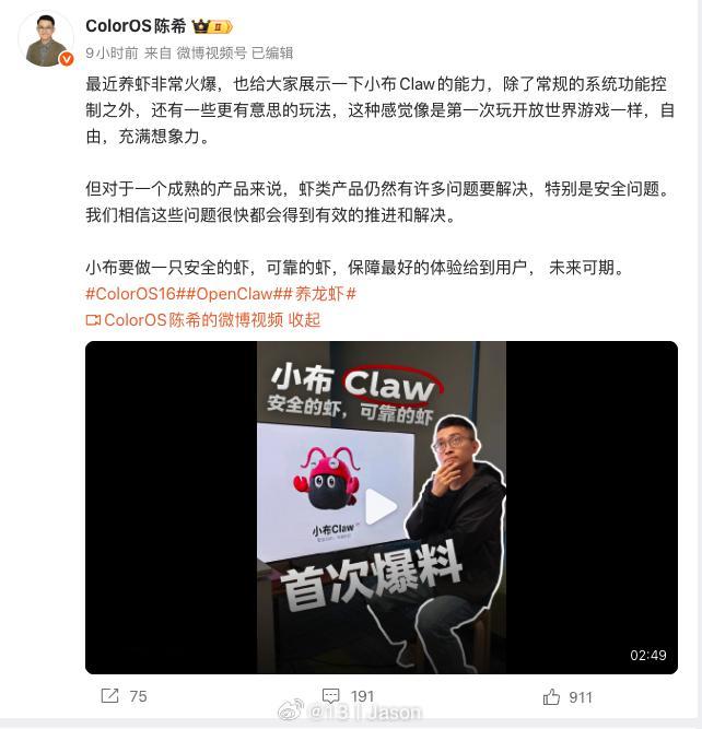 讲真,我其实非常期待 ColorOS 的「小布 Claw」。