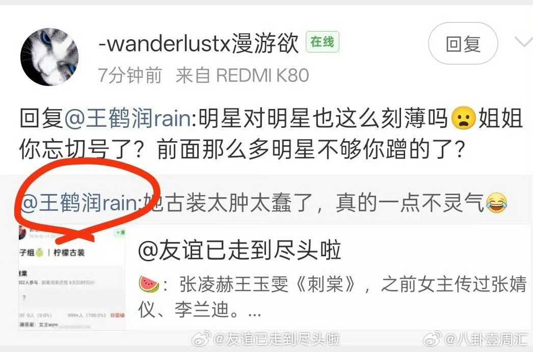 王鹤润吐槽王玉雯 王鹤润背刺 王鹤润吐槽王玉雯古装忘切号了这是,这算背刺吗 俩人前不久刚合照了……王鹤润吐槽王玉雯古装