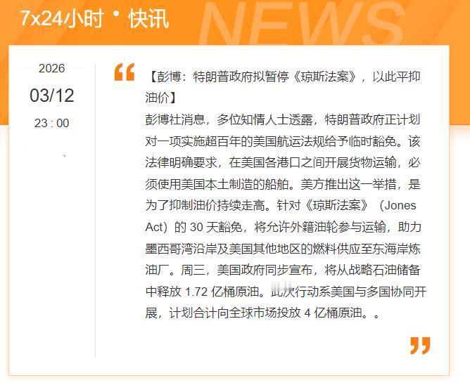 这一次,特朗普是真的认怂了! 为了降低油价, 不仅释放1.72亿桶战略储备石油, 还准备暂停《琼斯法案》! 可是, 美国是不是忘记了: 这轮油价上涨的“罪魁祸首”是谁?! 是你自己啊!美国! 哦,还有一件事! 伊朗的报复可能才刚刚开始! 看看小哈梅内伊最新的表态吧(图三)! 特朗普,你准备好了吗?! 特朗普政府拟暂停琼斯法案