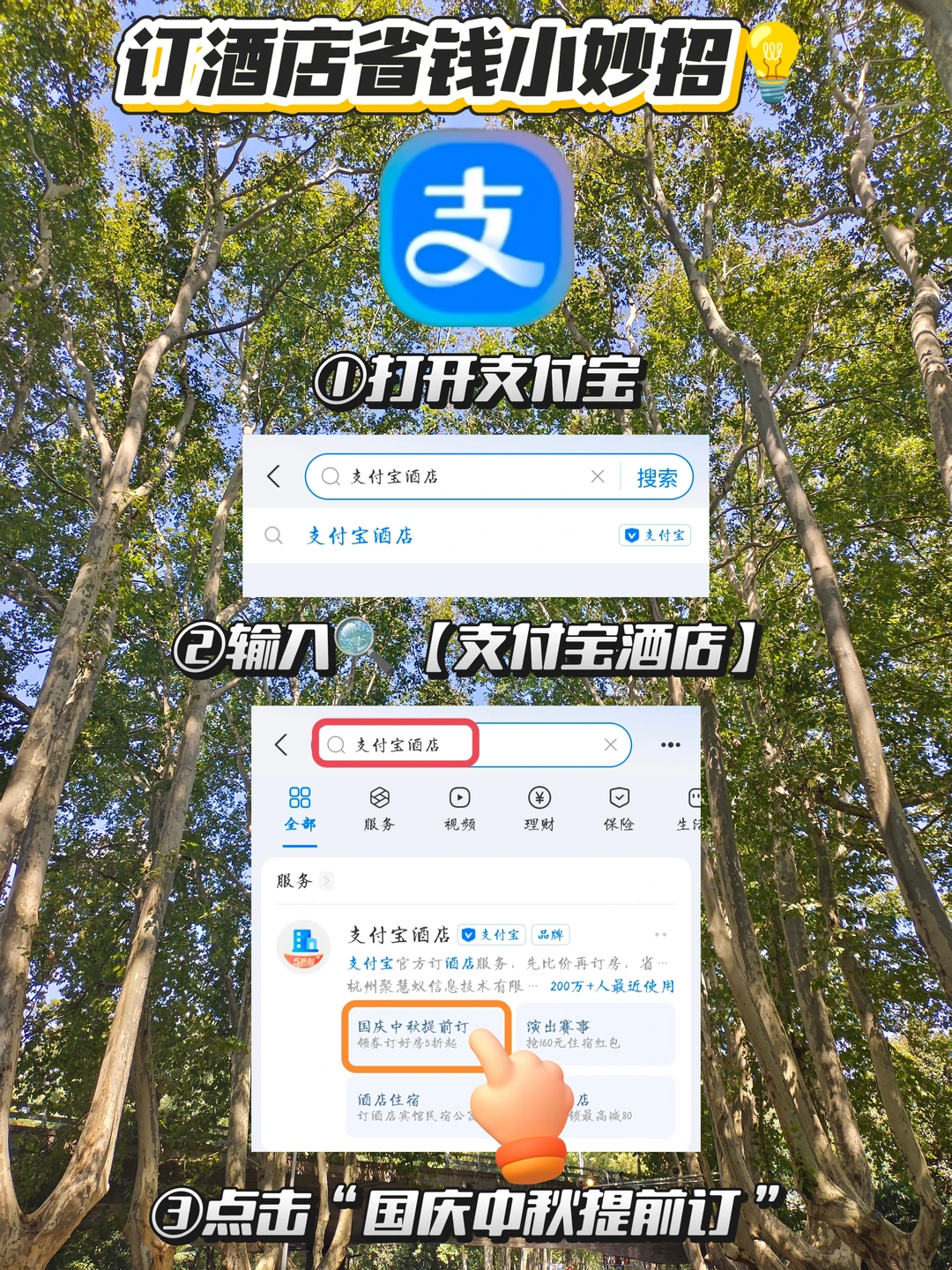 大家中秋国庆小长假出游真的可以用支付宝来提前订酒店,会送很多的酒店券,直接帮我们省下了大几十✌🏻