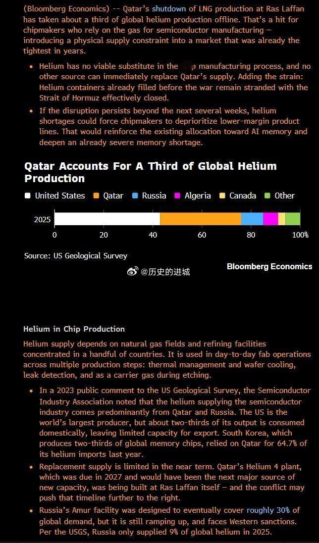 全球三分之一的氦气,一夜之间没了。卡塔尔,天然气巨头,也是氦气巨头。氦气在芯片制