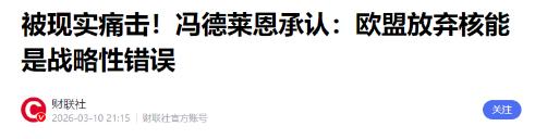 冯德莱恩承认淘汰核电是战略错误 这话一出口,估计最生气的就是德国人,毕竟当年在德国当部长,一门心思推动德国停掉所有核电站、甚至炸掉煤电厂的,正是冯德莱恩自己。 时间倒回2011年3月11号,日本福岛核电站炸了,时任德国环境部长冯德莱恩立马拍板:2022年底前必须关掉德国全部17座核电站。 这决策直接把德国电力结构干崩了:核电占比从2010年的23%直接掉到2023年的6%,煤炭发电反而从43%涨到48%。 更魔幻的是,德国不得不从俄罗斯大量进口天然气填窟窿,2021年俄气占比高达55%,相当于把能源命脉交给普京,为后来的俄乌冲突埋下大雷。 现在冯德莱恩为啥认怂,全是被现实打脸打出来的。 俄乌一开战,俄罗斯“北溪-1”管道输气量直接砍掉80%,德国电价飙到每兆瓦时600欧元,工业成本暴涨30%,巴斯夫、西门子这些大企业只能把生产线搬去美国。 反观法国,70%的电靠核电,电价只有德国的三分之一,成了欧洲能源危机的“安全岛”。 技术层面更扎心,德国弃核后,虽然可再生能源占比45%,但一到冬天就抓瞎,2023年冬天寒潮,风电出力不足,柏林直接停电48小时。 而法国的EPR核电机组能稳定运行900天不用加燃料,碳排放只有煤电的1/20,中国“华龙一号”核电技术更牛,直接出口英国,证明核能在减排和稳定供电上确实有两把刷子。 地缘政治上,冯德莱恩的转向其实是欧洲想摆脱美国控制的信号,德国原本想用氢能替代核电,但绿氢成本高达每公斤8欧元,是灰氢的4倍,根本玩不转。 而美国《通胀削减法案》直接给本土核电补贴30%,相当于从欧洲抽走200亿欧元投资。 这种“去工业化”的焦虑,逼得德国不得不重新考虑核电,2024年2月,德国政府宣布3座核电站延期到2025年,还砸50亿欧元研发小型模块化核反应堆。 冯德莱恩认怂不是简单的政策反转,而是欧洲能源战略的觉醒,它告诉我们一个道理:在气候危机和地缘冲突双重压力下,能源政策必须兼顾安全、经济和环保。 德国弃核的教训说明,脱离现实的理想主义只会让国家陷入被动,中国“华龙一号”的成功出海,恰恰证明核能技术已经突破安全瓶颈,成为基荷能源的可靠选择。 未来欧洲应该放弃意识形态束缚,构建“核能+可再生能源+储能”的多元体系。 对中国来说,这既是机遇也是警示,推进“双碳”目标时,必须警惕“运动式减碳”的陷阱,坚持“先立后破”的科学路径。 历史终将证明:真正的战略智慧,在于平衡理想与现实,在变革中守护民生和产业根基。 当冯德莱恩在布鲁塞尔反思时,世界看到的不仅是一个政治家的认错,更是一个大陆在能源十字路口的艰难抉择。