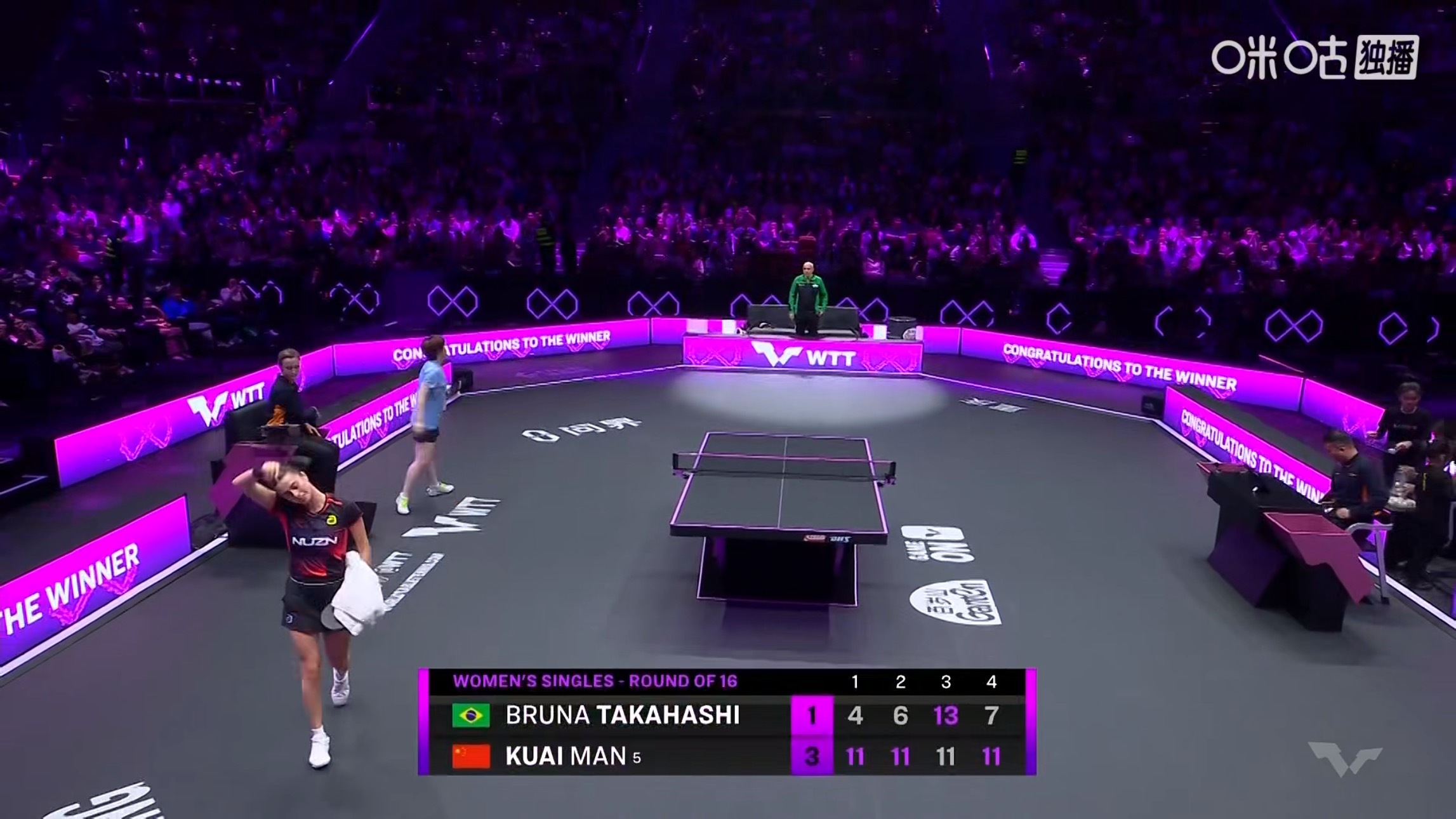 蒯曼3比1高桥布鲁娜(11-4,11-6,11-13,11-7)晋级wtt重庆冠