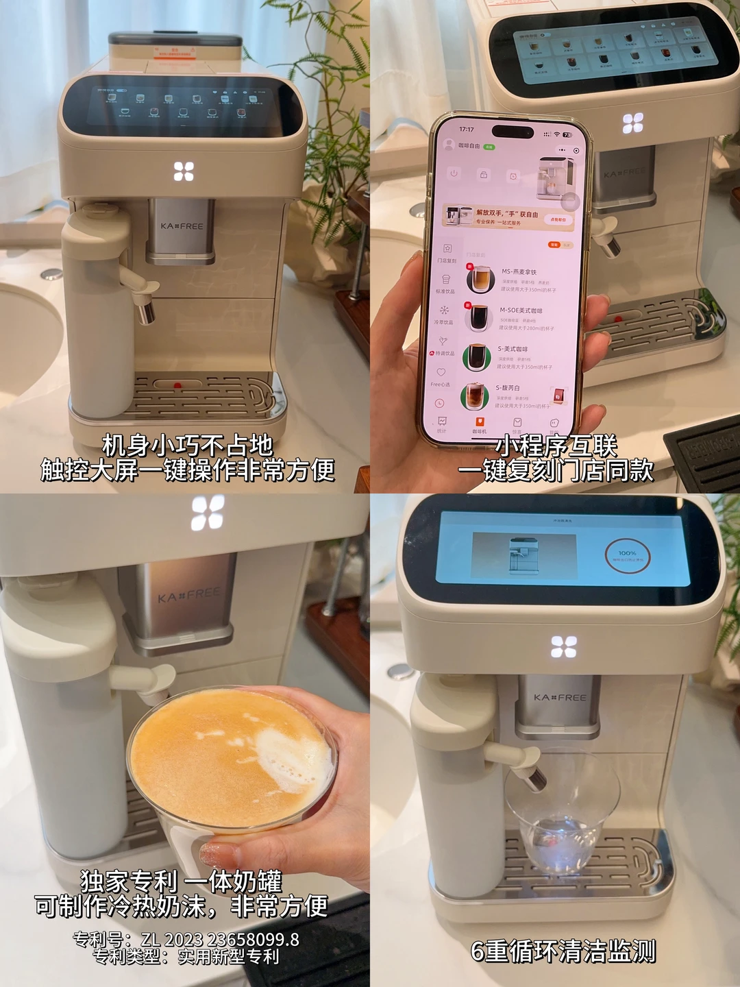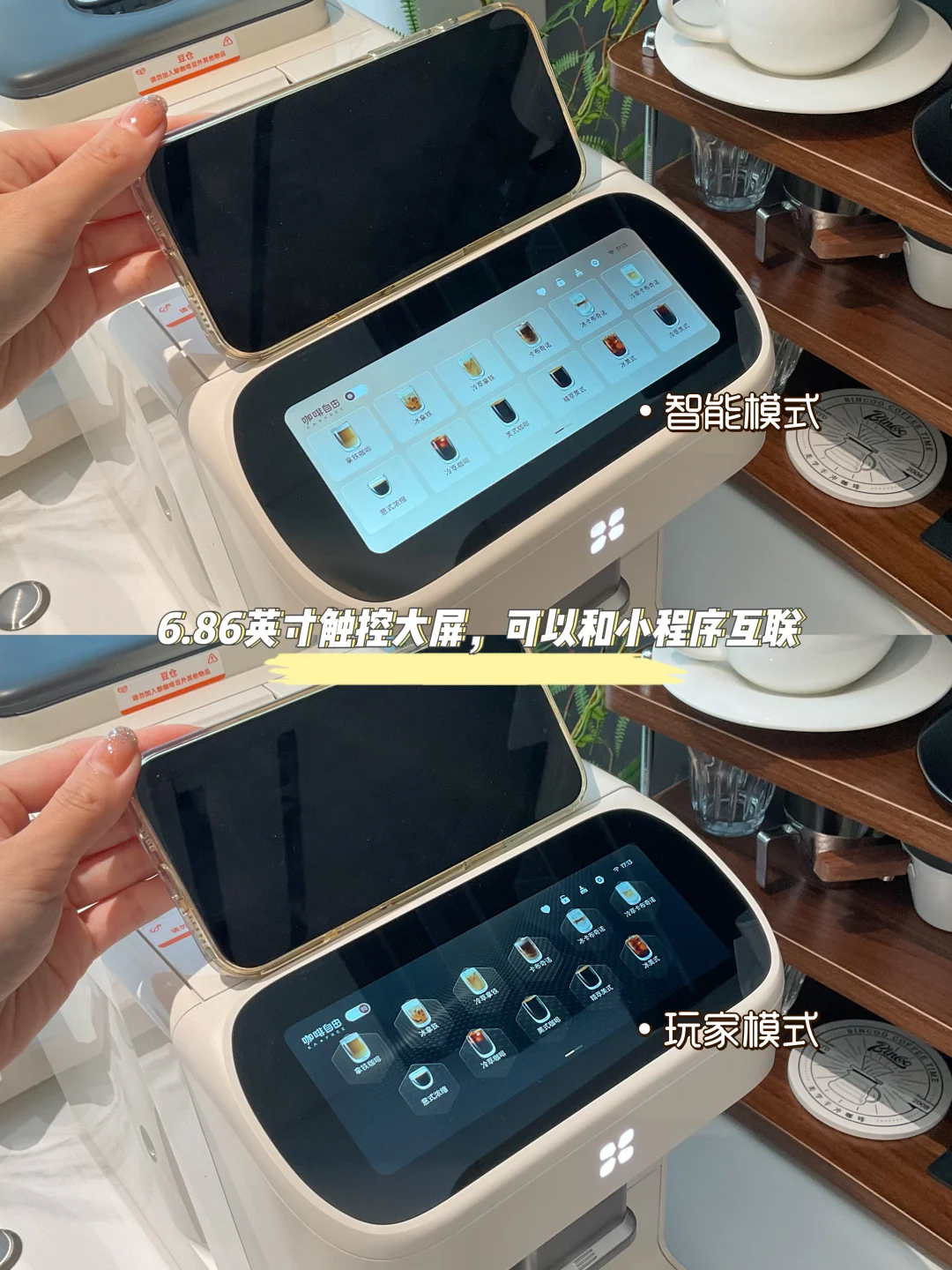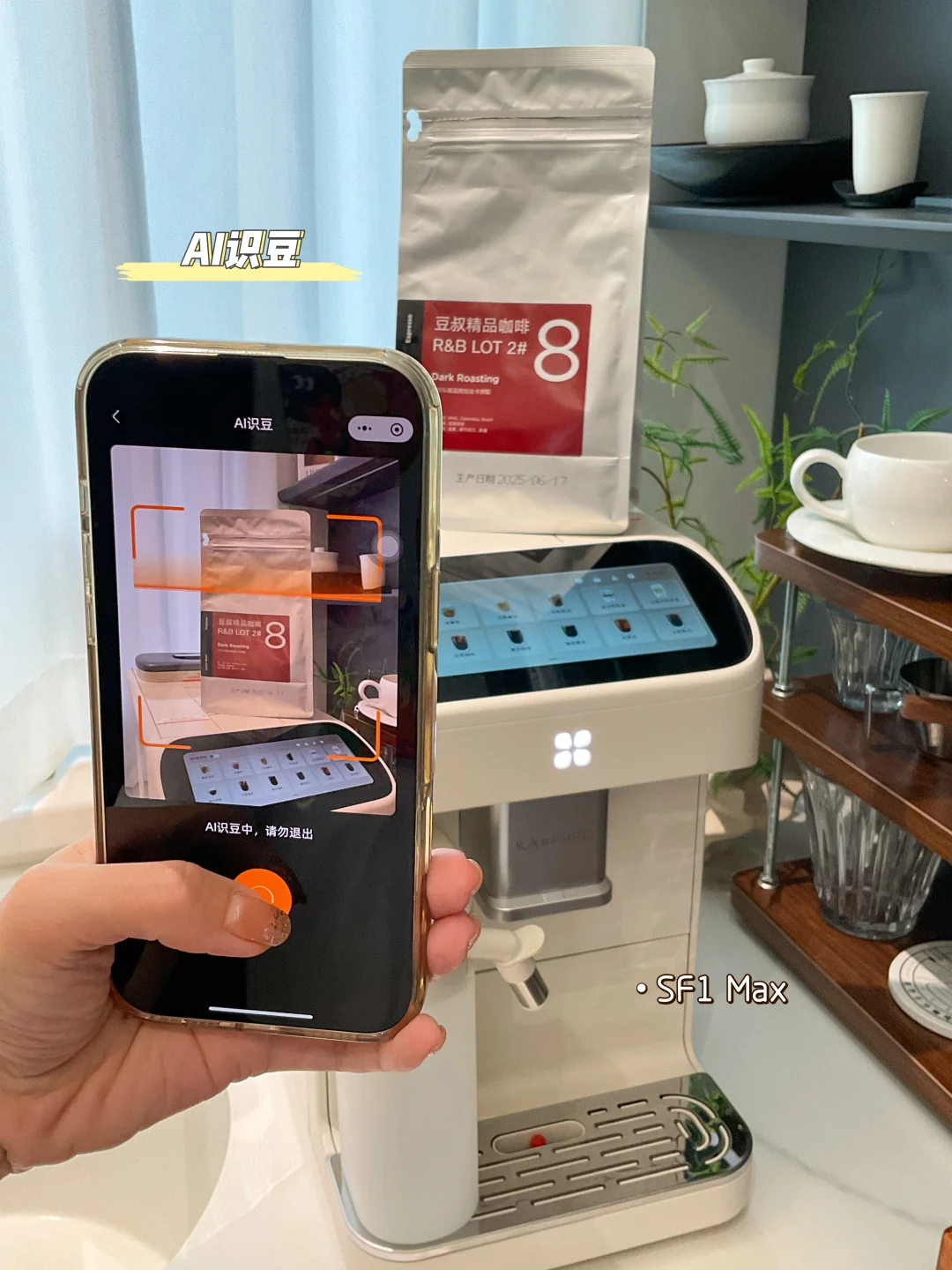 SF1 Max有6.86英寸触控大屏操控,支持小程序互联,可以一键get门店同款咖啡。触控大屏包含玩家模式和智能模式,可任意切换。智能模式下可以AI识豆,能识别90+款咖啡豆,400+款配方,而且还新增了特调功能,做出的咖啡口感还原度非常高,很适合咖啡小白操作使用。