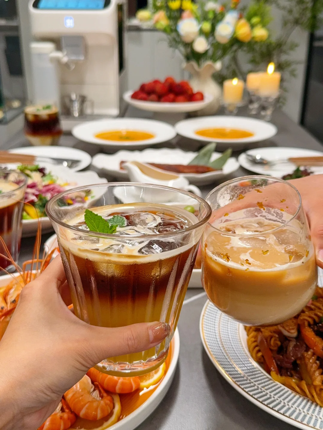 [集美R]搭配这一桌丰盛的美食,我用新入的咖啡自由SF1 Max做了几杯特调咖啡,味道完全不输咖啡店。不用点外卖、不用门店排队,在家就能快速做出一杯高品质咖啡简直太幸福啦!