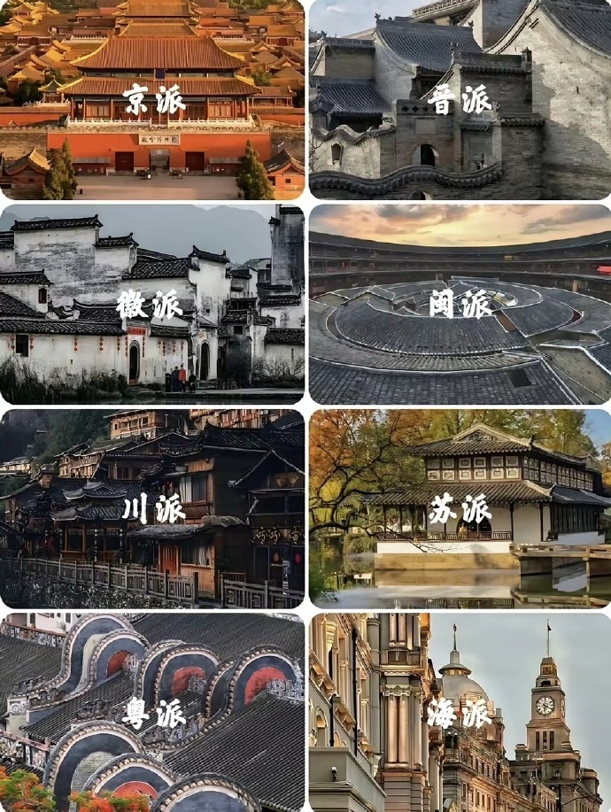 京派, 晋派,苏派,徽派,川派,闽派,粤派,海 派,中国建筑八大派系各具特色,你