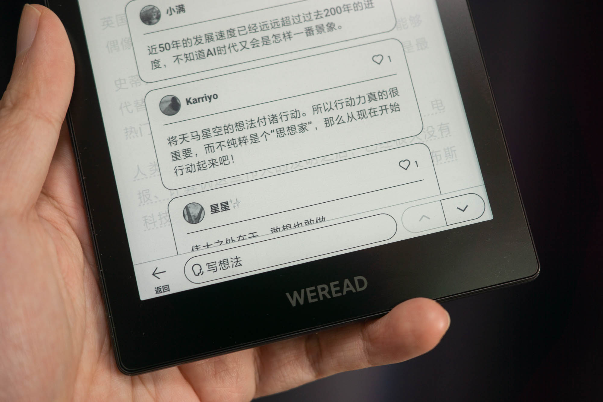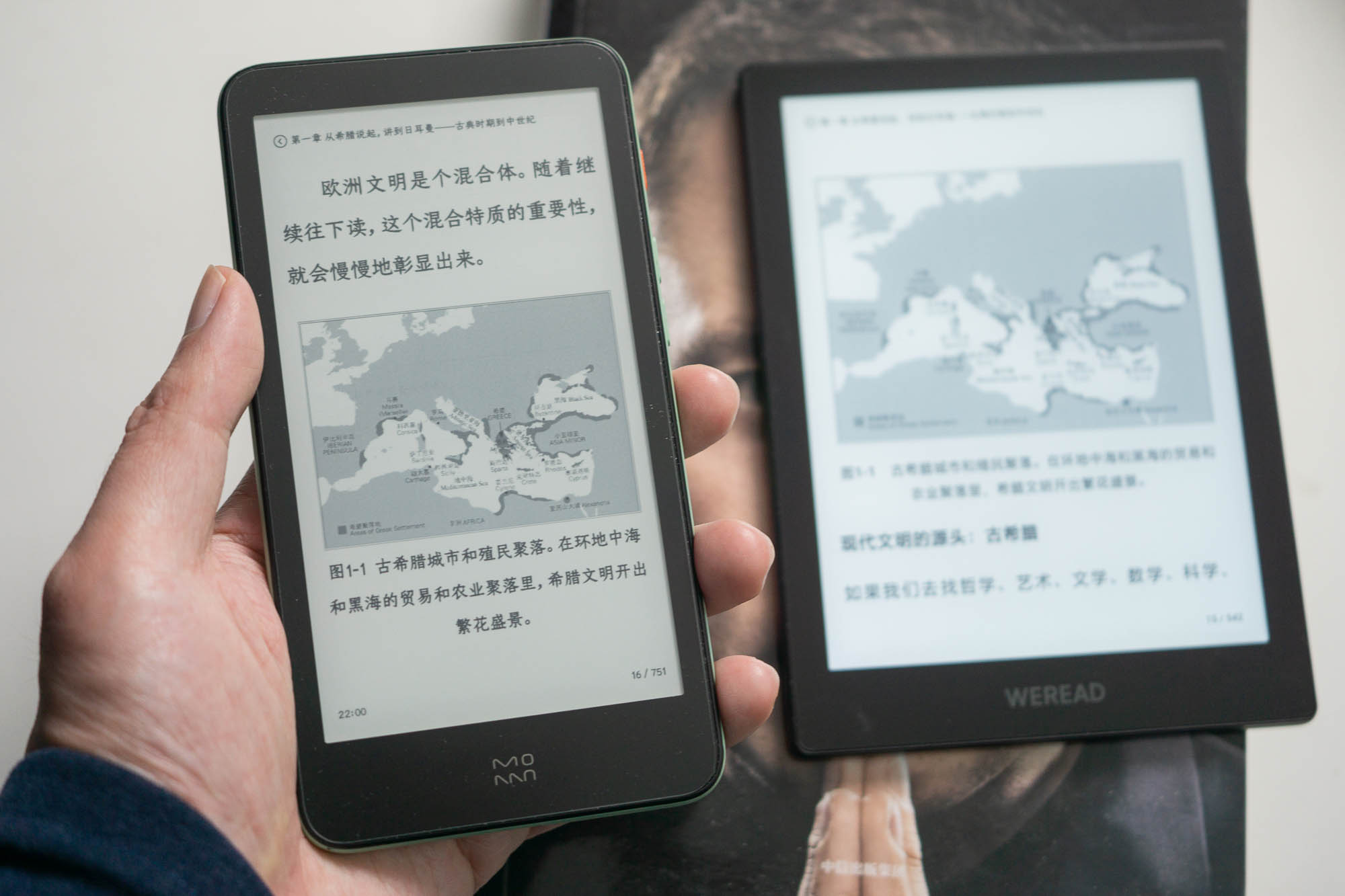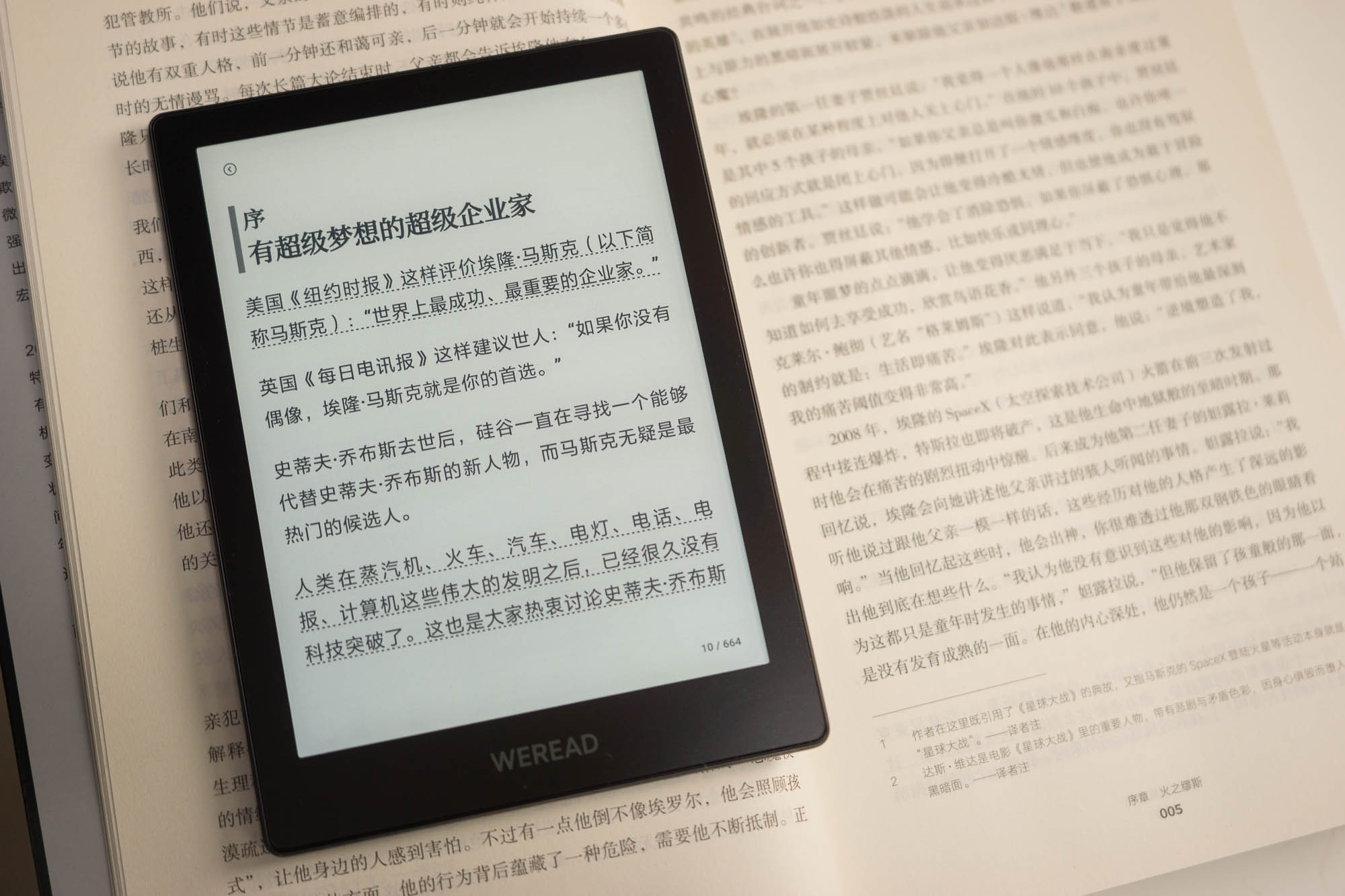 它的受众似乎是微信读书App的死忠粉,在这块6英寸1448*1072分辨率、300ppi的Carta1300墨水屏上阅读。