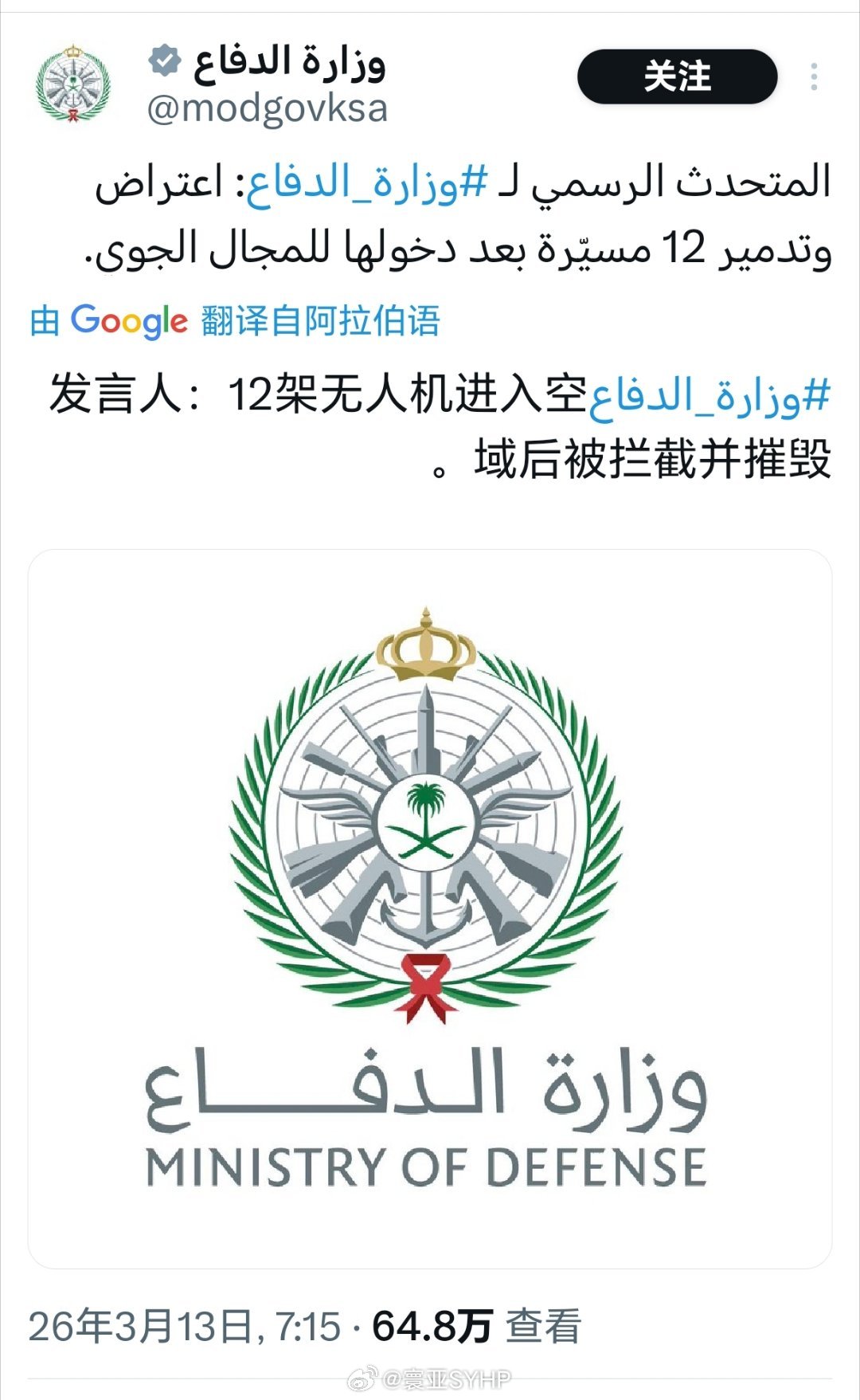 伊朗继续攻击沙特美军设施通过沙特国防部发文统计,在过去的二个多小时,沙特拦截了3