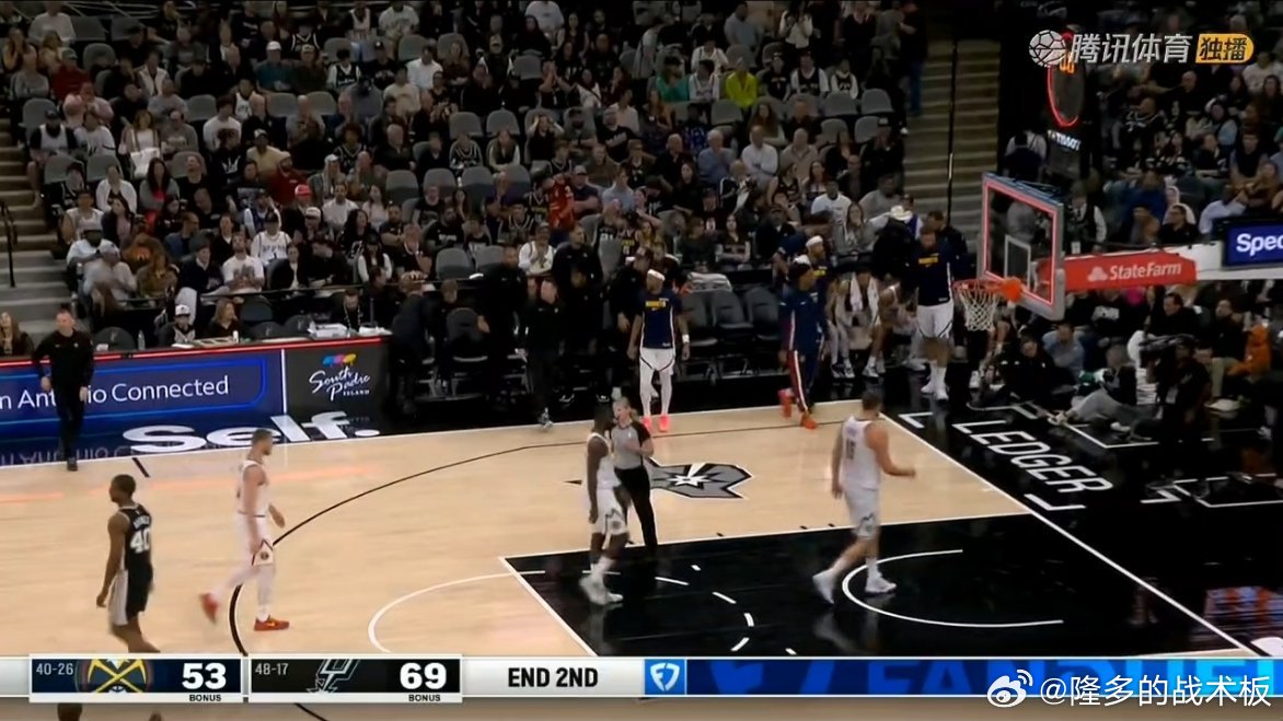 马刺半场领先掘金16分,文班都轮休了掘金vs马刺