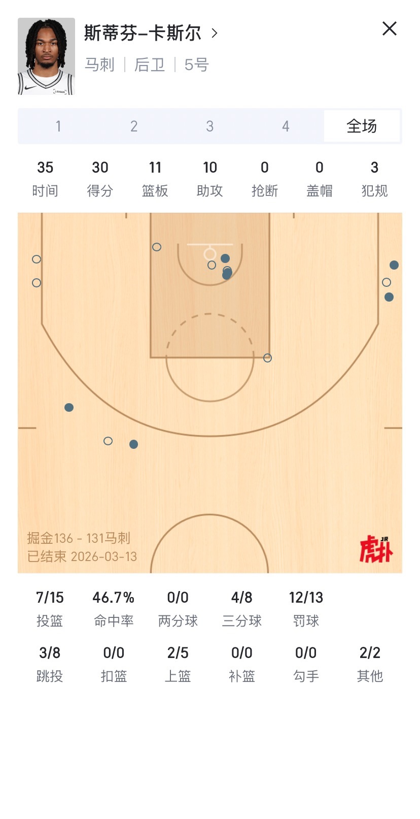 卡斯尔再拿一个三十分三双,福克斯27+9,老巴一复出就拿30分