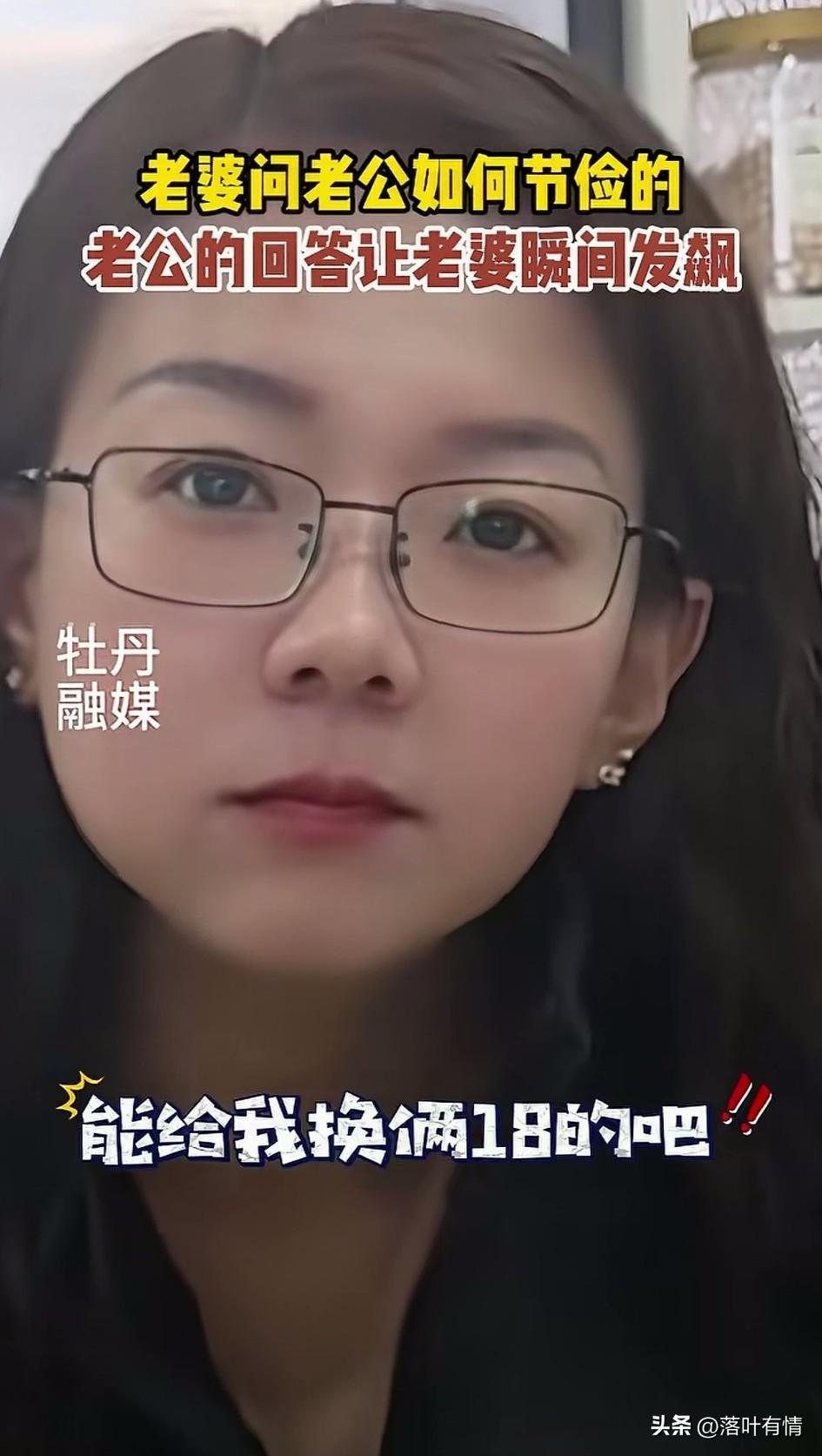 老婆对男子说, 作为一个男人, 你现在都节俭到这个程度了, 男子反驳说, 你今年都三十六了吧? 我10年都没有换媳妇儿, 你能不能给我换两个18的? 这句话直接让媳妇儿破防了, 拿起手上的面包砸下了老公, 男人永远都是这么专一, 一直喜欢18的, 即便是过了10年还是喜欢18的, 这个老公说出了多年的愿望, 谁说男人都比较花心? 明明人家一直都喜欢18岁的, 这个爱好是一点都没有变, 这俩夫妻平时你问他的, 还真的一个敢问,一个敢答! 大家觉得这样的有趣生活好玩吗? 夫妻那些事 女性节俭