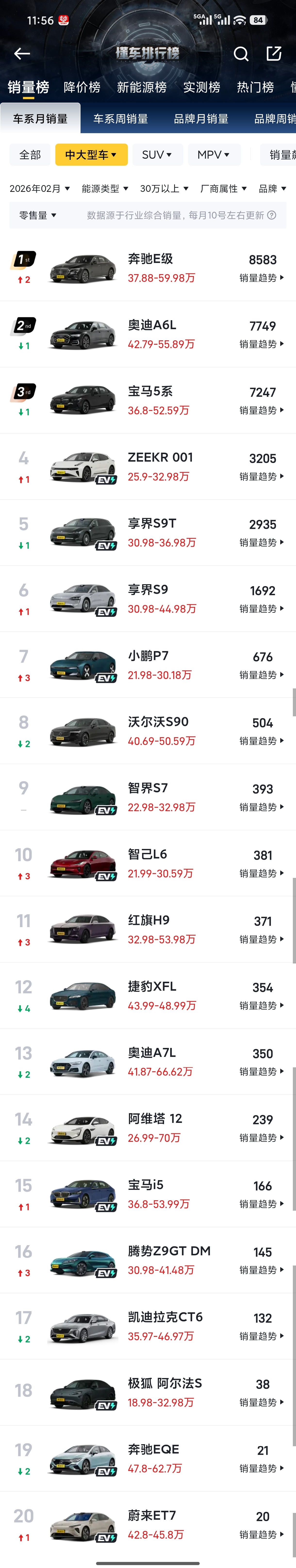 2月汽车品牌销量公布,享界蝉联30万级新能源轿车销冠 连续5个月问鼎第一!