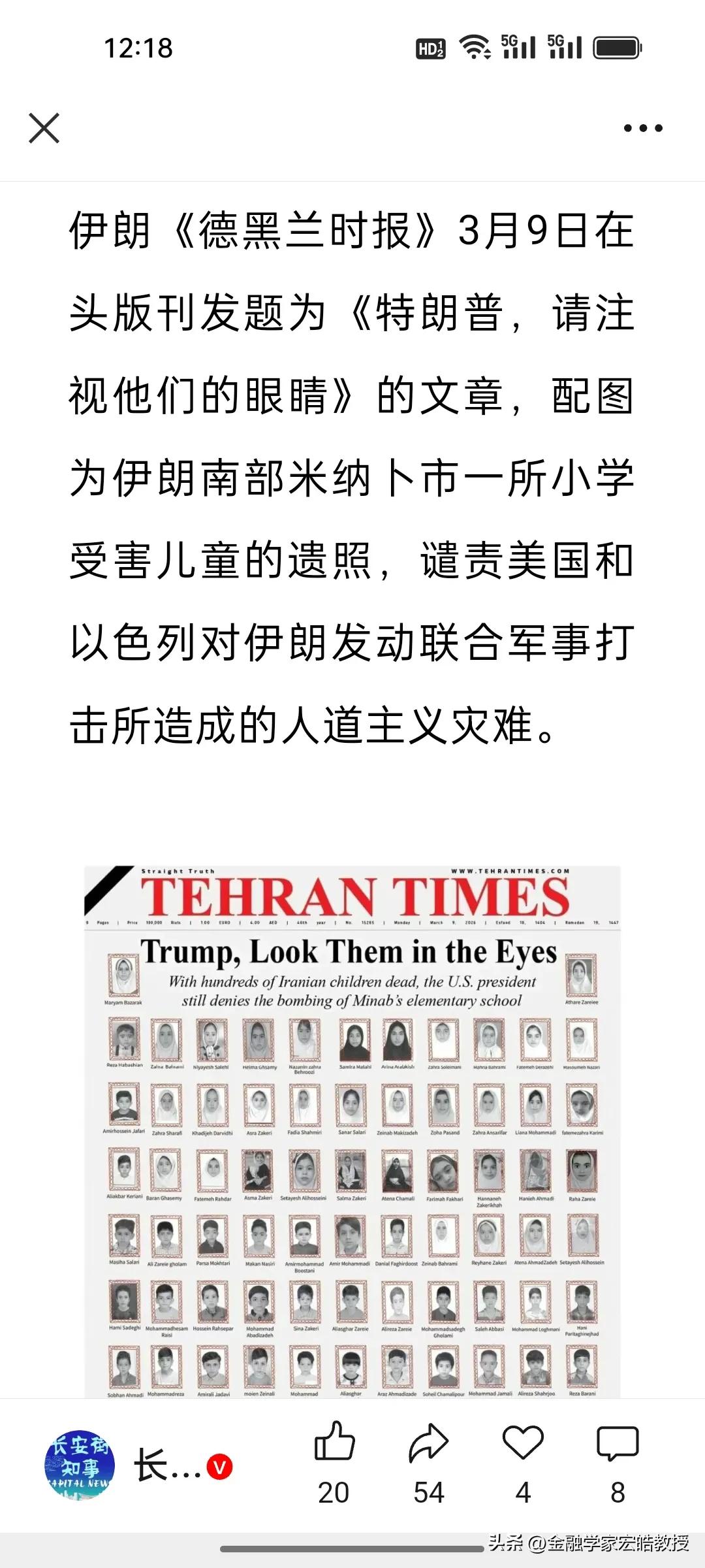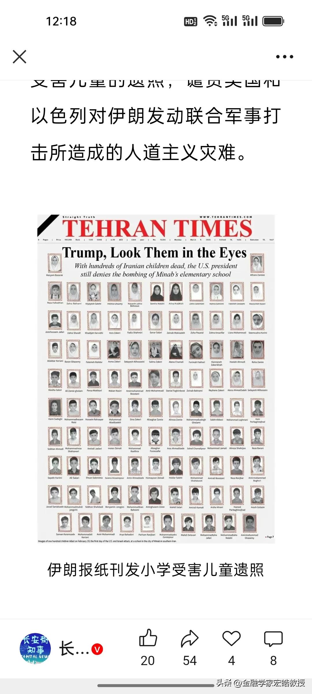 美国终于承认!165名伊朗女童死于美军“误击”,这些女童家庭都应该得到赔偿! 刚刚,美军上将格林克维奇终于在听证会上承认:2月28日伊朗米纳卜市小学遭袭,是美军用“战斧”导弹误击所致,至少165名女童遇难,根源是“过时情报+目标定位错误”。 从特朗普暗示“伊朗自导自演”,到军方改口“误操作”,这场人道主义灾难的真相被层层揭开。 所谓“失误”,本质是美军在中东肆意发动战争、战略草率,漠视平民生命的必然结果。伊朗《德黑兰时报》头版铺满遇难儿童遗照,穆杰塔巴·哈梅内伊强硬表态:必须支付战争赔偿,血债不能用“失误”一笔勾销!
