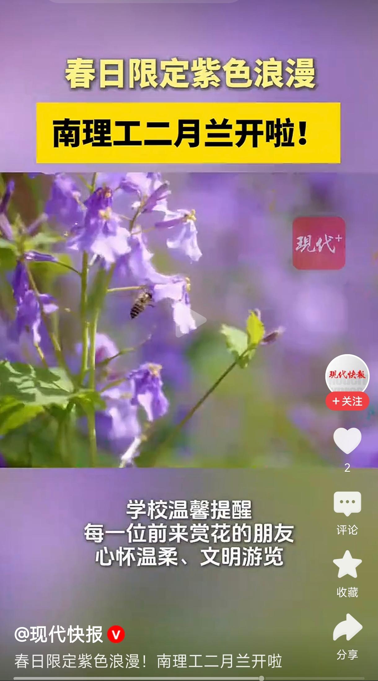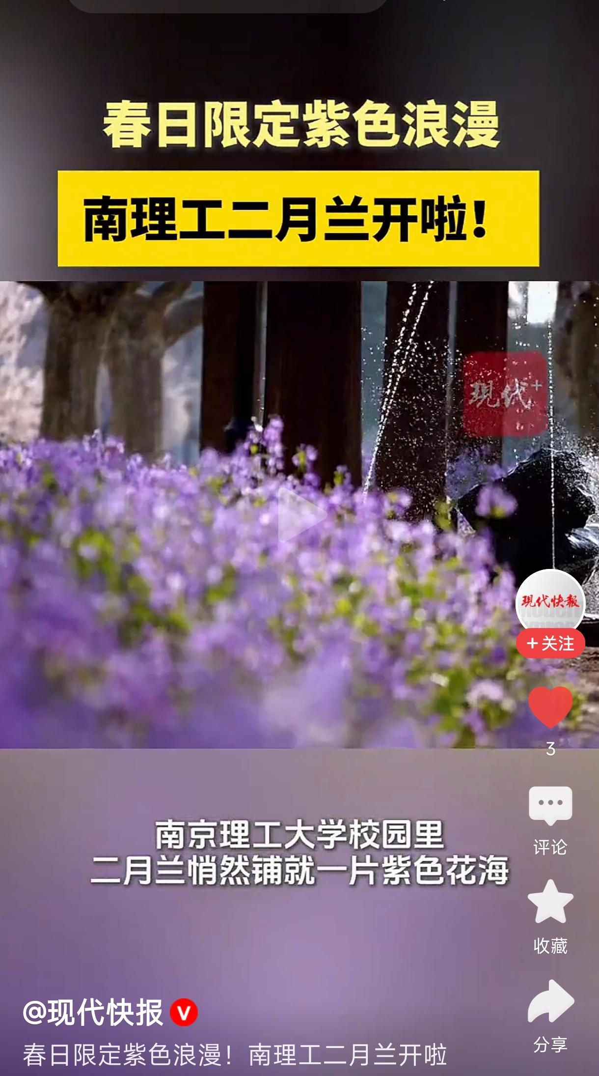 南京理工大学二月兰盛开 南京理工大学的二月兰花近日盛开,迎来了春日的紫色浪漫景象。作为春天的使者,二月兰以其清新淡雅的紫色花朵,为校园增添了浓浓的春天气息。现代快报也特别报道了这一美丽的景象,提醒大家春日限定,不妨趁此时节走进南理工校园,感受二月兰带来的自然之美。绽放的二月兰 二月兰紫色花海