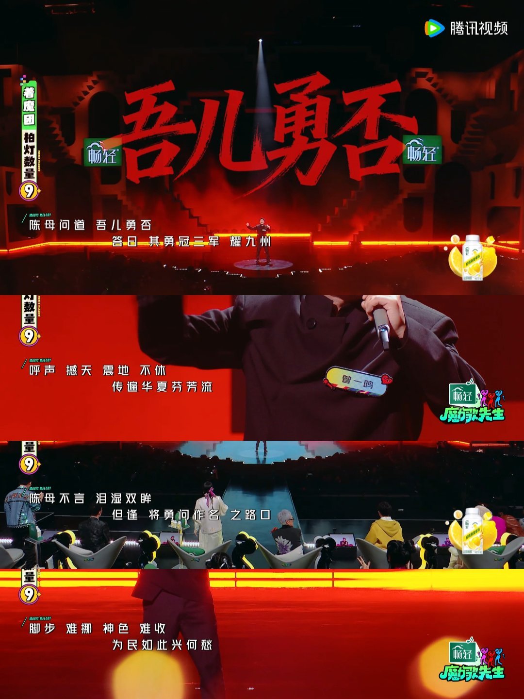 曾一鸣陈母问勇唱出了家国情怀魔力歌先生 舞台之上,歌手以一曲《陈母问勇》致敬戍边英雄陈祥榕。歌声讲述英雄母亲“问儿勇否”的动人故事,把军人担当、家国大义唱进人心,用音乐铭记英烈、致敬英雄母亲,听得人热泪盈眶!