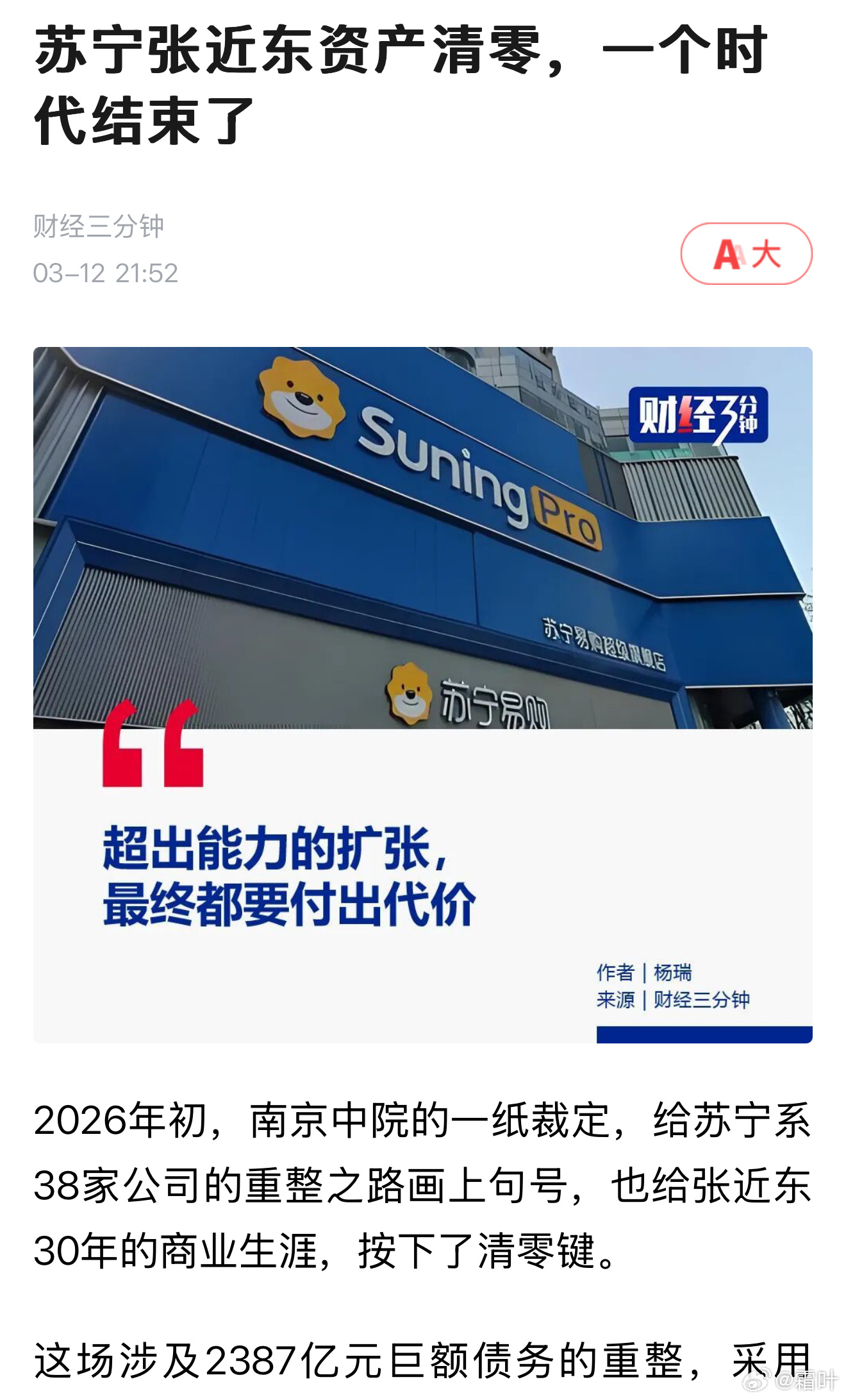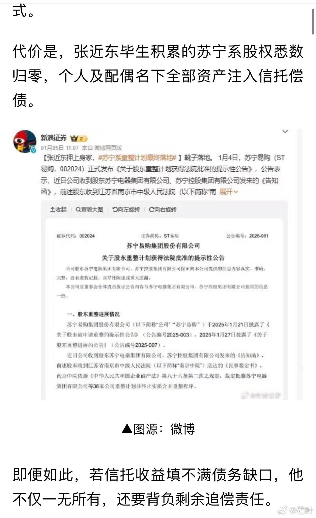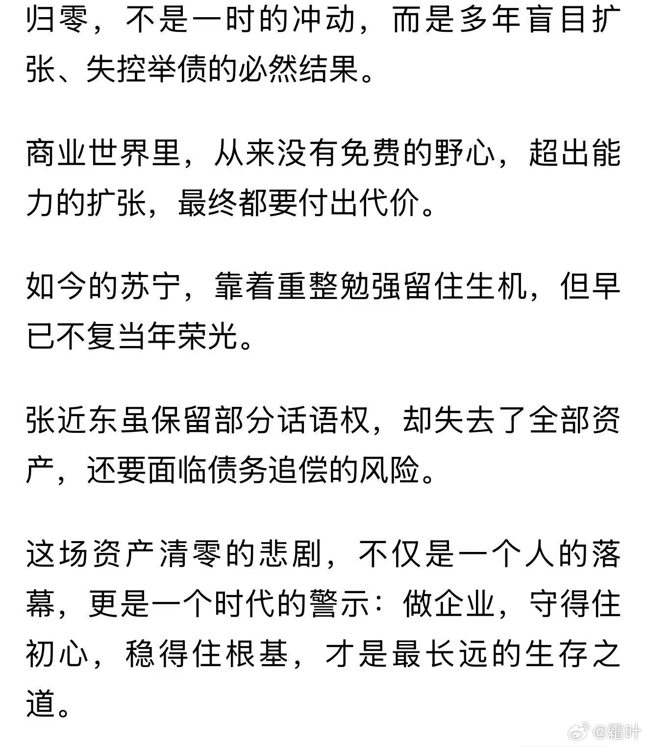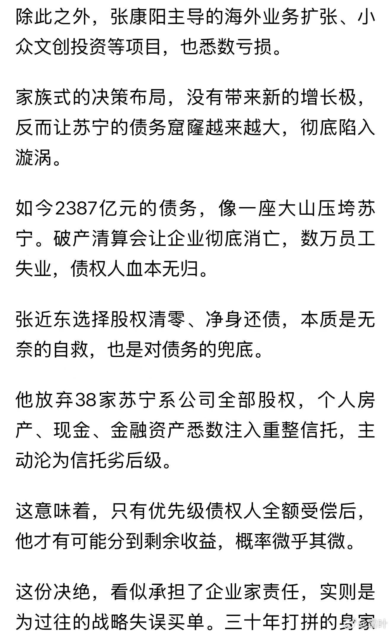 张近东及其家族虽败,但起码是有担当的!不像解直锟及其家族,骗取十余万人的数千亿血