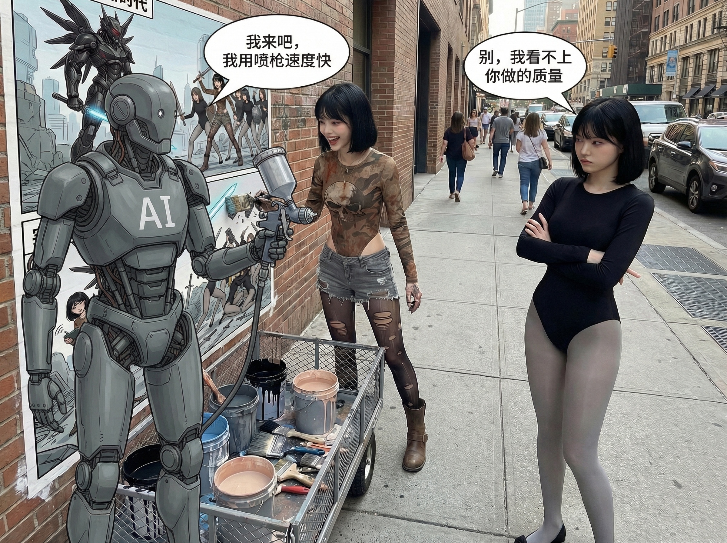 有老艺术家说,目前 AI 创作质量仅七十分,难出精品,守住对方的效率冲击不是问题。
