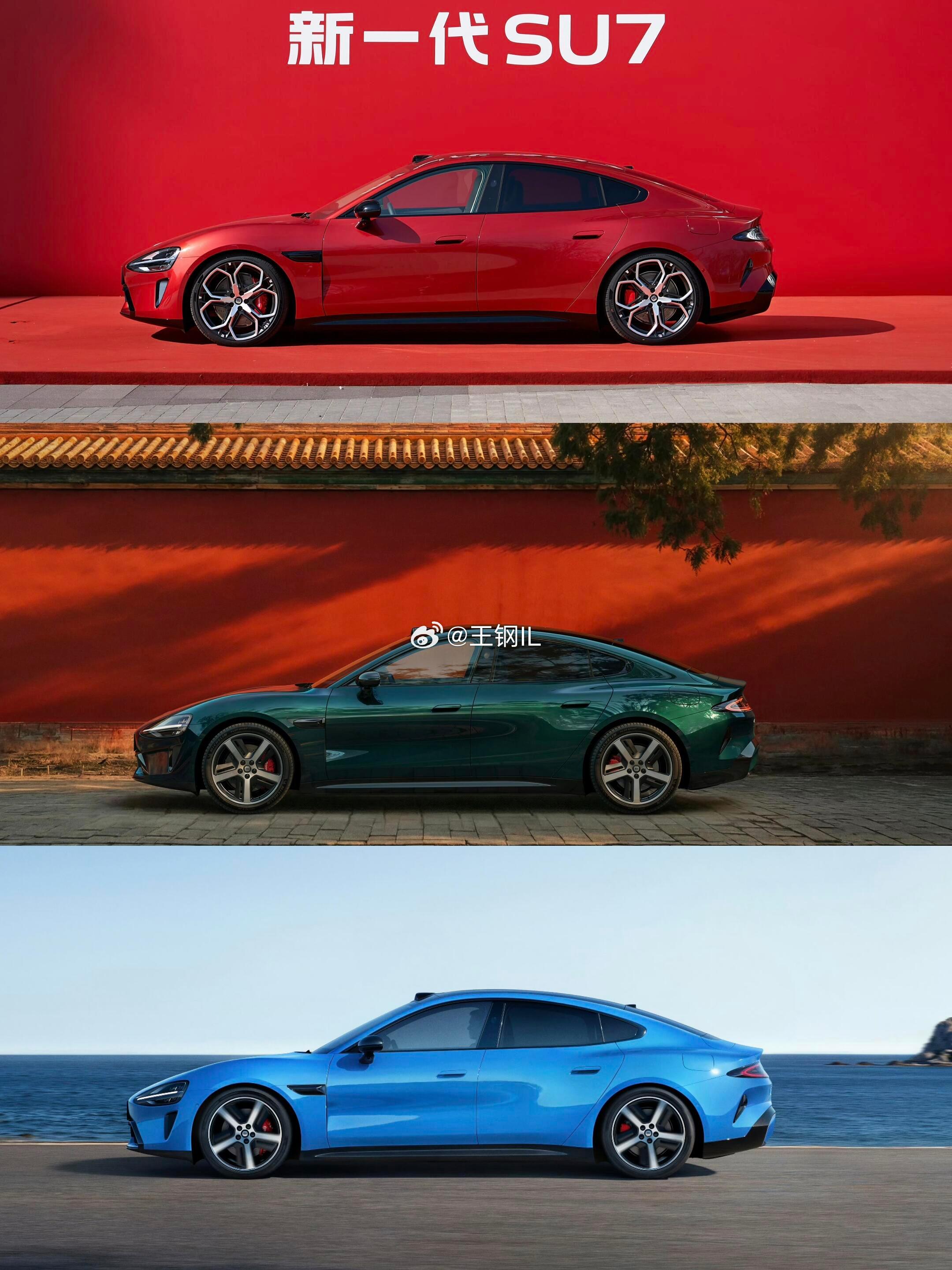 小米su7红绿蓝三色集齐,本月发布。跟第一代不一样的赤霞红,靛石绿,卡布里蓝都集