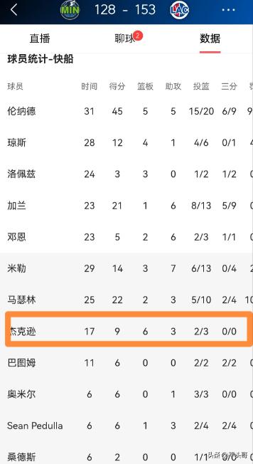 快船悍将杰克逊真是球队的替补神兵!在昨天快船主场以153:128大胜森林狼的比赛中,杰克逊在攻防两端都打出了可圈可点的表现,为球队的大胜做出了非常大的贡献。 快船主场对阵森林狼的比赛,最终以快船大比分赢下比赛告终,这场胜利里,伦纳德的发挥是球队赢球的关键,但替补席上的以赛亚·杰克逊,同样用自己的表现撑起了球队的轮换,成为球队取胜的重要助力。 杰克逊是快船交易截止日后新加入的球员,这场比赛他顶替受伤的尼德豪泽,获得了稳定的轮换出场时间。 比赛里,他没有因为是新援就放不开,上场后很快就融入了球队的攻防节奏。 进攻端,他不贪球权,更多是在篮下找机会,接到队友传球后能稳稳把球放进篮筐,也会主动给队友做掩护、传切,帮着梳理第二阵容的进攻,让快船的替补进攻打得更顺畅。 他在场上不盲目出手,每一次进攻选择都很务实,能把自己的得分效率保持在不错的水平,给球队的进攻端补上了一份稳定的火力。 防守端是杰克逊表现最亮眼的地方。他身高不算特别突出,但移动速度快,防守积极性很高,在篮下的护筐和协防都做得很到位。 面对森林狼的内线冲击,他多次站在合理位置完成盖帽,干扰对手的上篮和投篮,让森林狼的内线进攻多次受阻。 除了护筐,他在篮板球的拼抢上也很积极,不管是防守篮板还是进攻篮板,都会主动卡位、起跳,帮球队守住后场篮板,也能在进攻端抢到二次进攻的机会,给球队创造更多得分可能。 这场比赛快船能大比分赢下森林狼,靠的是全员发挥。伦纳德主导了球队的进攻体系,加兰、马瑟林等球员也有出色表现,而杰克逊作为替补内线,在有限的出场时间里,把自己的作用发挥到了极致。 他没有华丽的数据,但在攻防两端的每一次贡献,都实实在在帮到了球队,进攻端不添乱、能得分,防守端能护筐、能抢篮板,这样务实又高效的表现,让他成为了快船替补席上的可靠力量。 对于快船来说,球队冲击季后赛需要每一位球员的付出,杰克逊在这场比赛里的表现,证明了他能在球队需要的时候站出来,承担起替补内线的责任。 他的这种发挥,不仅帮球队拿下了这场关键胜利,也让快船的内线轮换更有深度,为球队后续的比赛增添了更多底气。 以上都是个人观点,对此您有什么不同的看法,可以在评论区留言讨论!!!