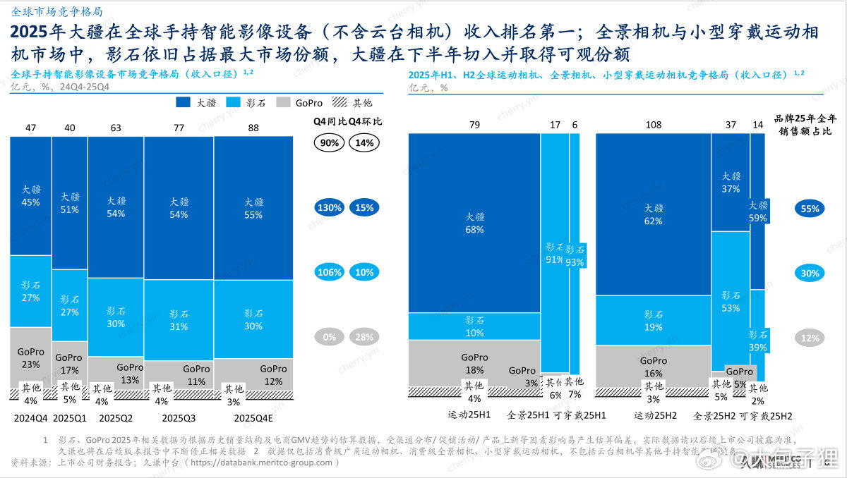所以说,大疆能做到超过50%的占比,不只是相机做得好、防抖做得牛。本质上,它是把车企最核心的平台化思维、生态化打法,彻底玩透了。从卷爆品变成了卷体系,卷生态。感觉今年要出的pocket4和新无人机也会是非常有意思的产品。大疆拿下全球手持影像55%份额大疆手持智能影像头号玩家