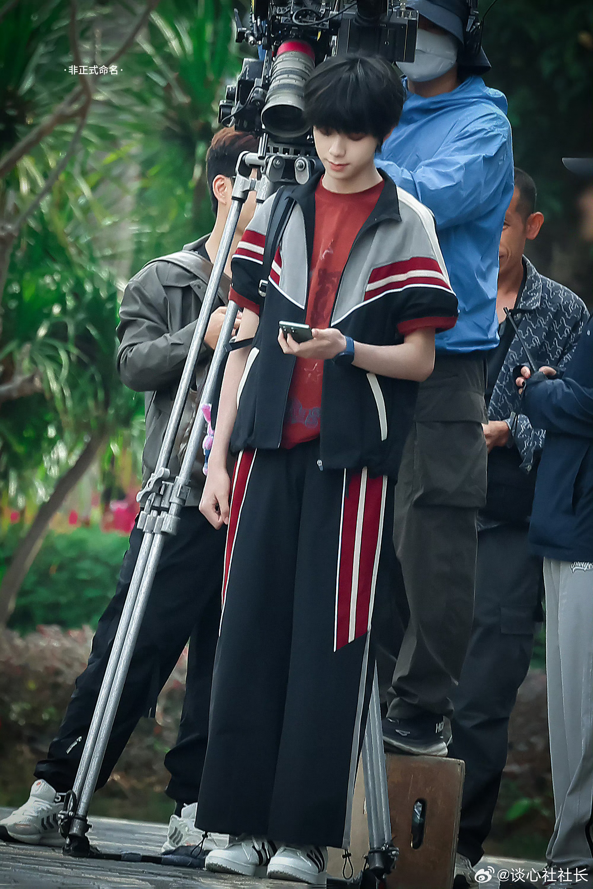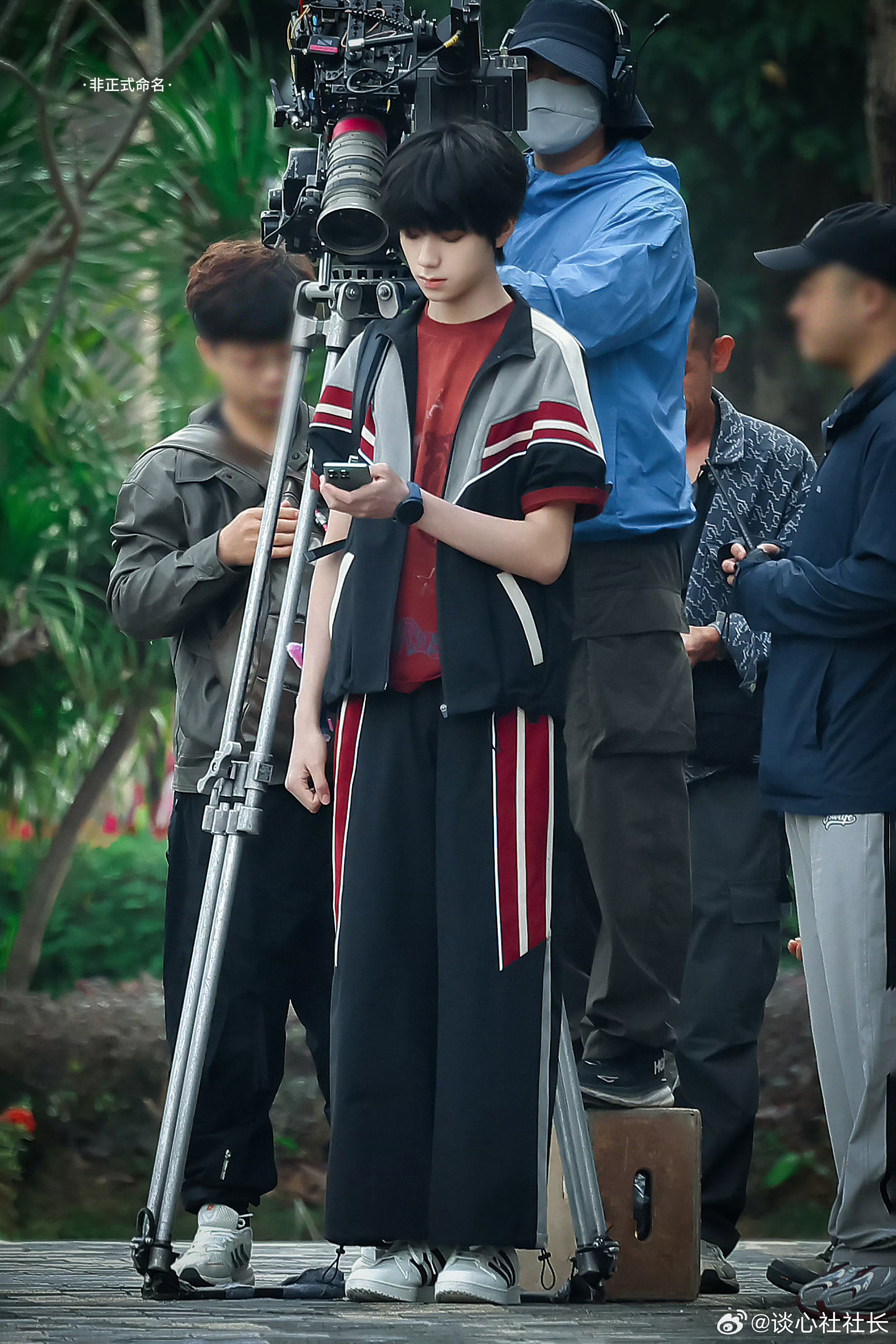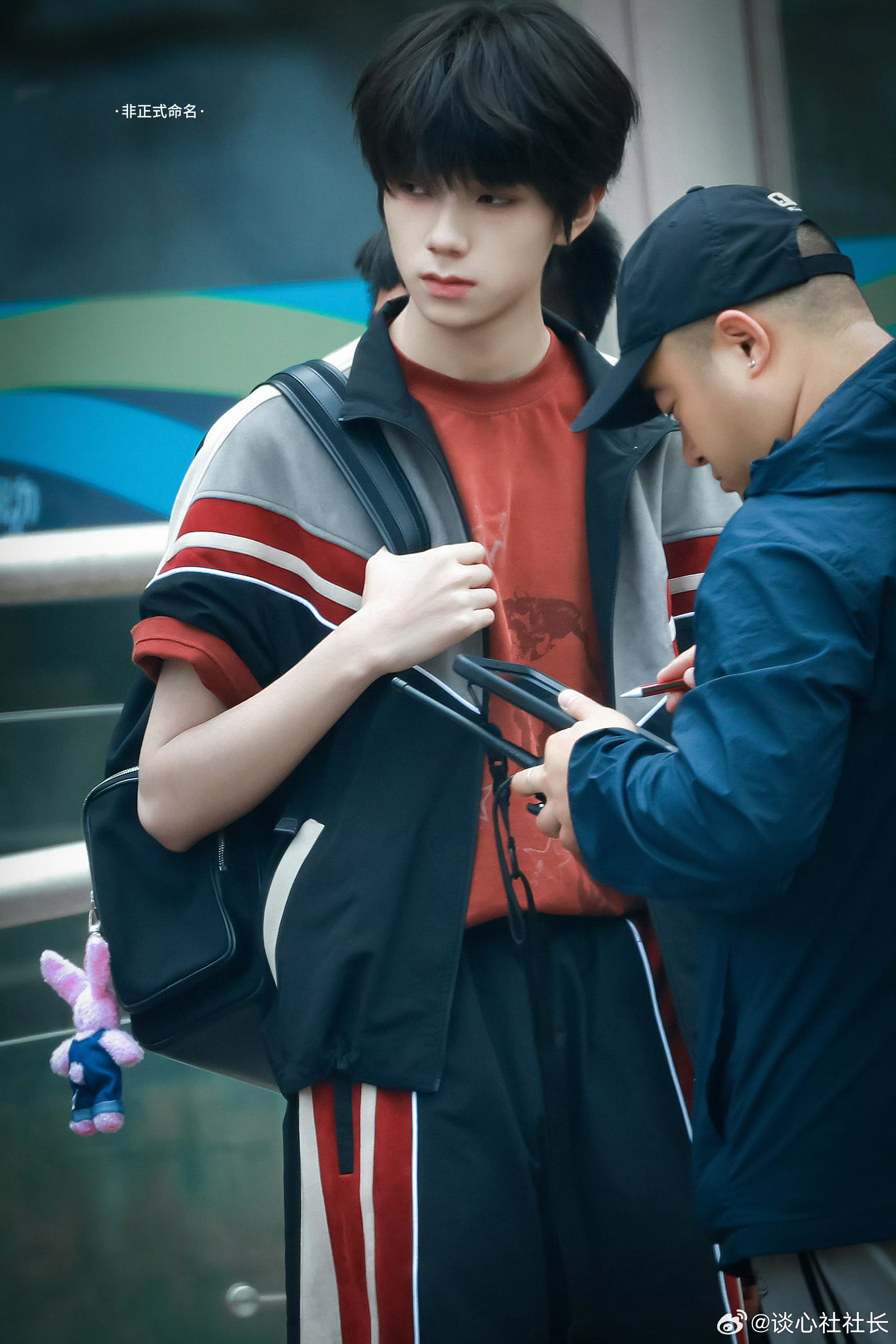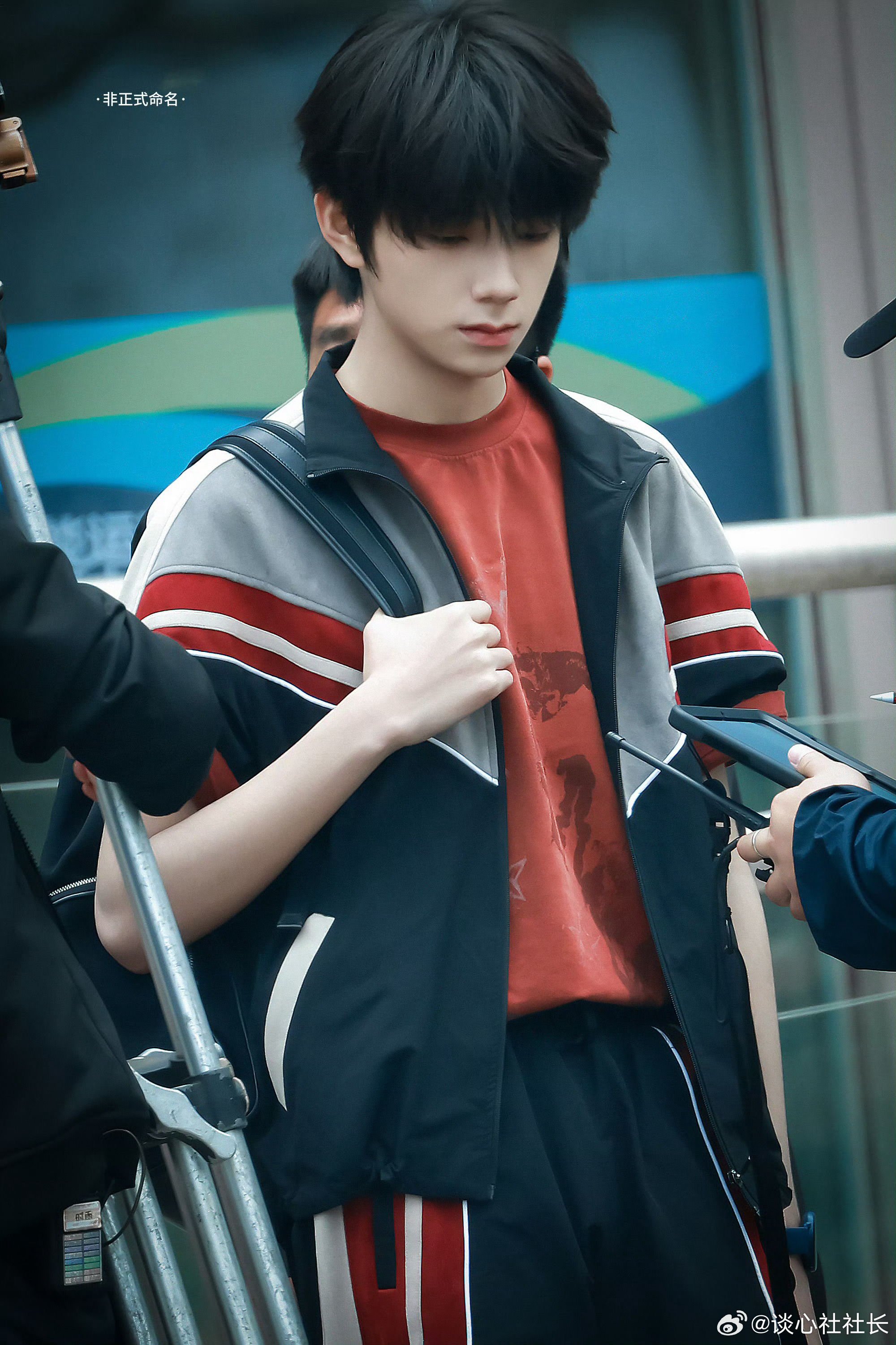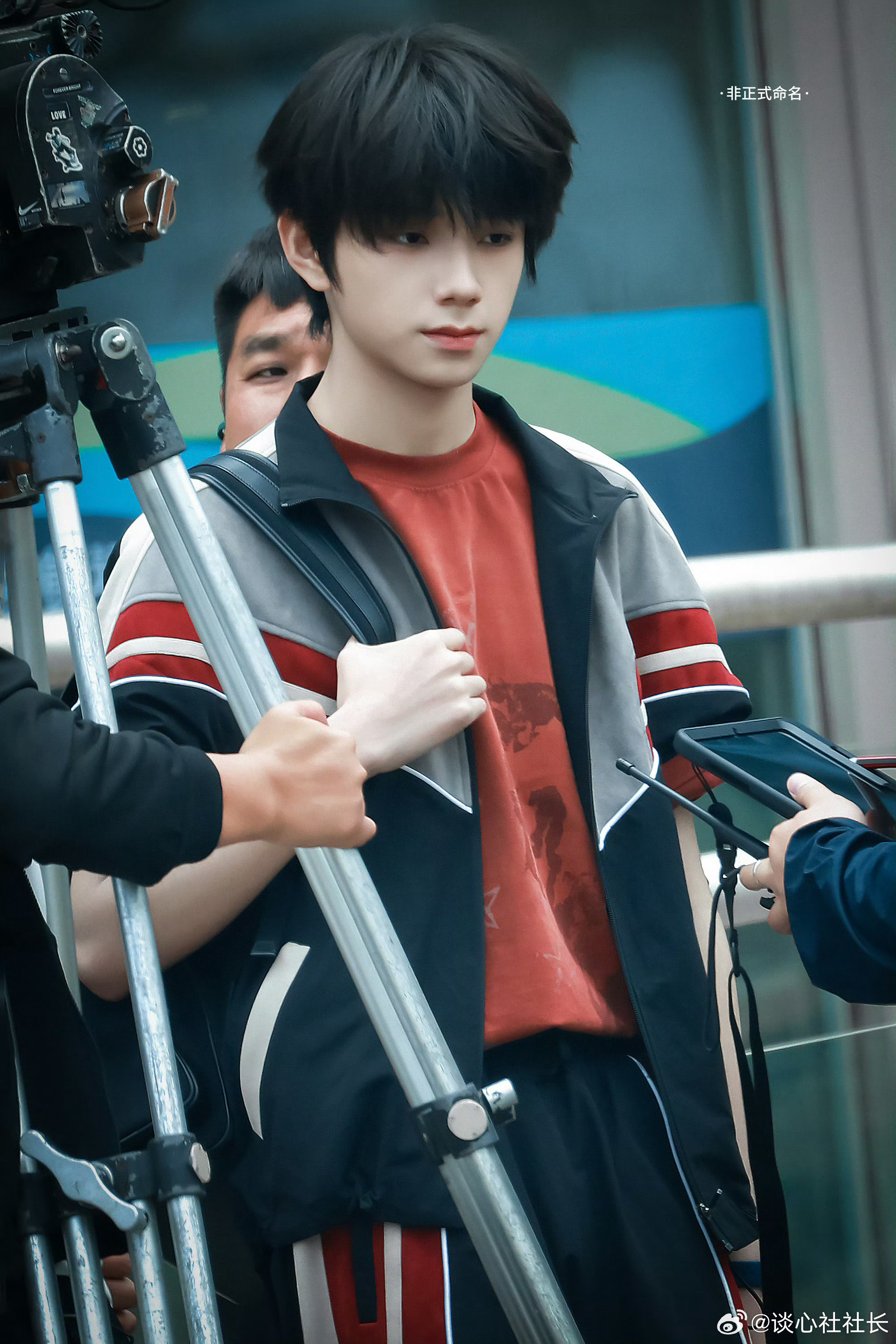 【王橹杰这组少年感路透太绝了】红黑拼色运动服和顺毛刘海,背着书包走在校园里,这不就是高中时偷偷暗恋的清冷学长本人吗?