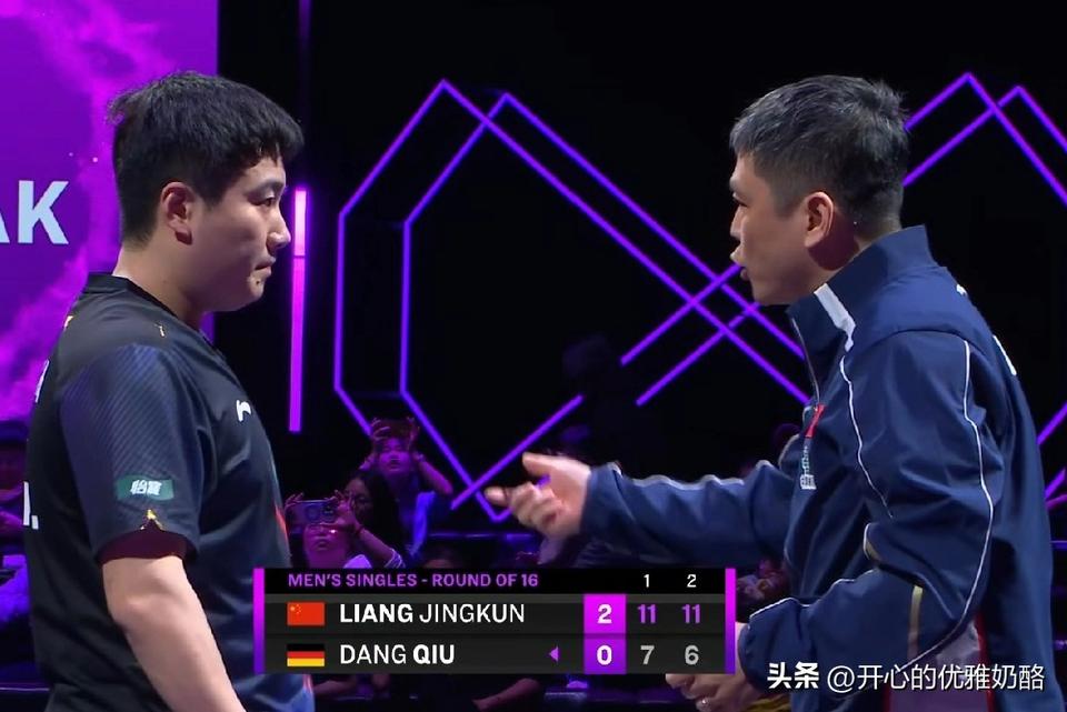 梁靖崑还是输了,志强当场外也没能赢。 梁靖崑之前和邱党交手,大都是五五开,都是有输有赢。 今天开局梁靖崑调动积极,连续大比分拿下两局,11-7、11-6。 第三局邱党比分一直领先8-3,场上大喊梁靖崑加油,也没能扭转局面,11-4邱党扳回一局,场上大比分2-1。 志强教练自多哈火出圈,再没看到他,今天出现在爱徒场外,梁靖崑明显打的更从容。 第四局比分紧咬,梁靖崑体能下降,流畅度开始下降,5-4志强叫暂停,回来打到6-6,7-6邱党又叫了暂停,回来打到9-9,11-9邱党又扳回一局。 比赛打到了决胜局,梁靖崑一定要更加坚定。 第五局比分开始胶着,很快邱党把比分拉开5-2,交换场地后梁靖崑又追回三分5-5平,11-8邱党拿下了。 图片来自网络侵权可删。