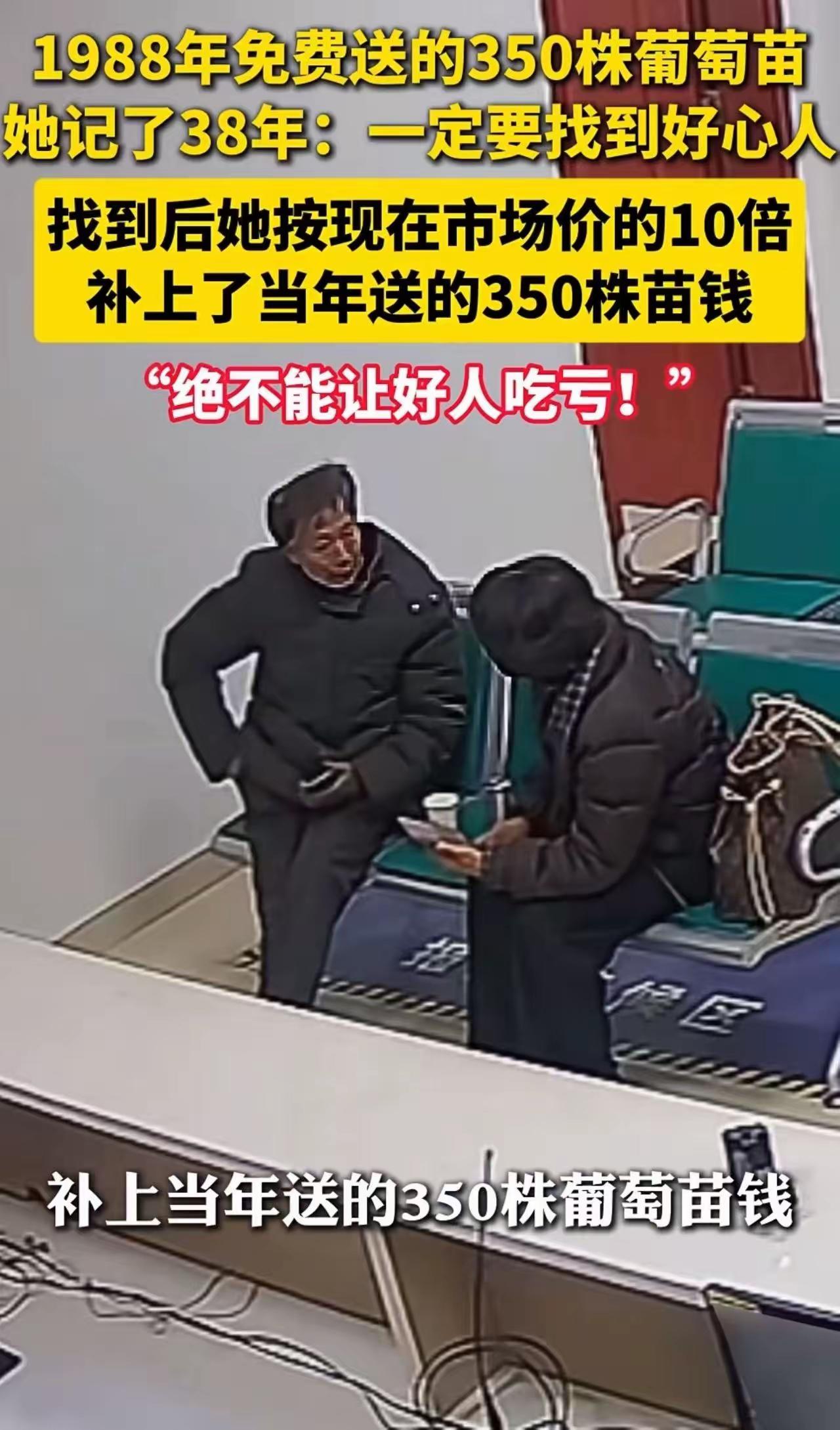 一句善举温暖半生,一份感恩跨越三十八载。 1988年的生活条件普遍艰苦。江西南昌的雷阿姨家中穷困潦倒。空空的米缸诉说着生活的艰难。 (个人观点仅供参考,无任何不良引导) 心中不甘贫困的雷阿姨萌生种植致富的想法。偶然品尝到浙江金华单大爷培育的葡萄。清甜的口感让她看到生活的希望。她鼓足勇气向单大爷求取葡萄种苗。热心的单大爷不辞辛劳。亲自从金华运送三百五十株葡萄苗抵达南昌。雷阿姨掏出全部积蓄。依旧无法支付种苗费用。善良的单大爷看出她的窘迫与执着。主动免去所有种苗费用。仅收取少量往返路费。全力支持她开启种植之路。 三百五十株葡萄苗承载着生活的曙光。雷阿姨日夜操劳精心管护。汗水浇灌出丰收的果实。贫困的家境迎来彻底转变。破旧土坯房翻新成舒适小洋楼。衣食无忧的生活取代往日的饥寒。这份雪中送炭的恩情。在雷阿姨心中铭记三十八年。岁月增长加深心中的愧疚。偿还恩情的念头愈发强烈。茫茫人海寻找恩人难度极大。雷阿姨始终不曾放弃寻找的脚步。 雷阿姨专程前往浙江金华塘雅派出所求助。民警被这份赤诚感恩之心打动。全力开展寻人工作。失联多年的单大爷最终得以寻获。年迈的单大爷已是白发苍苍。早已淡忘多年前的举手之劳。面对雷阿姨的还钱之举。老人满脸疑惑与推辞。老人始终坚持分文不取。只愿雷阿姨生活安稳幸福。雷阿姨坚持按照当下市价十倍偿还种苗费用。用实际行动兑现心中的承诺。 施恩不图报是难得的善良。知恩必报是珍贵的品行。三十八年的时光未曾磨灭初心。举手之劳的善意成就一段佳话。人间温情就在彼此帮扶之间。坚守良知与感恩之心。方能让美好与温暖长久相伴。