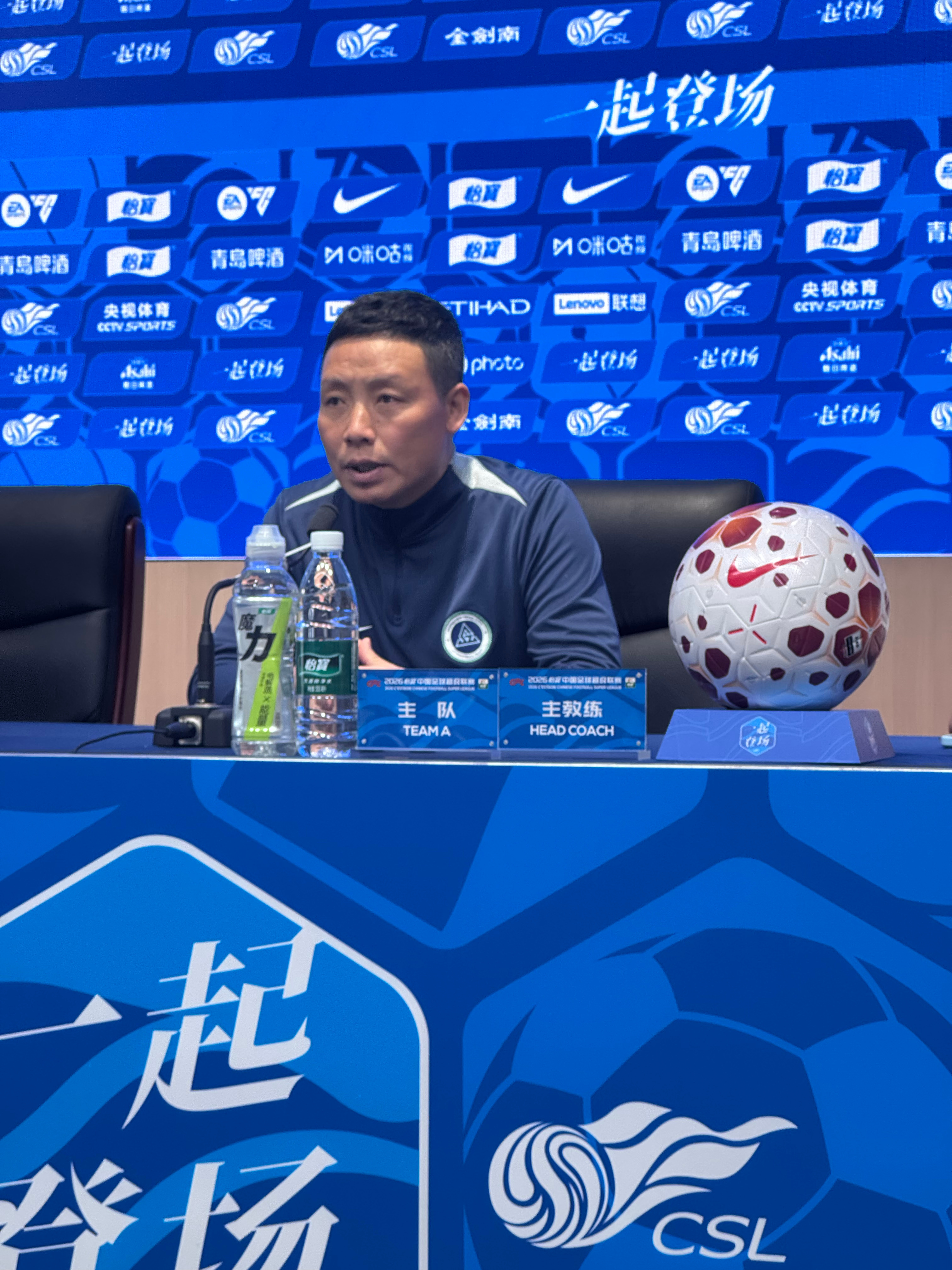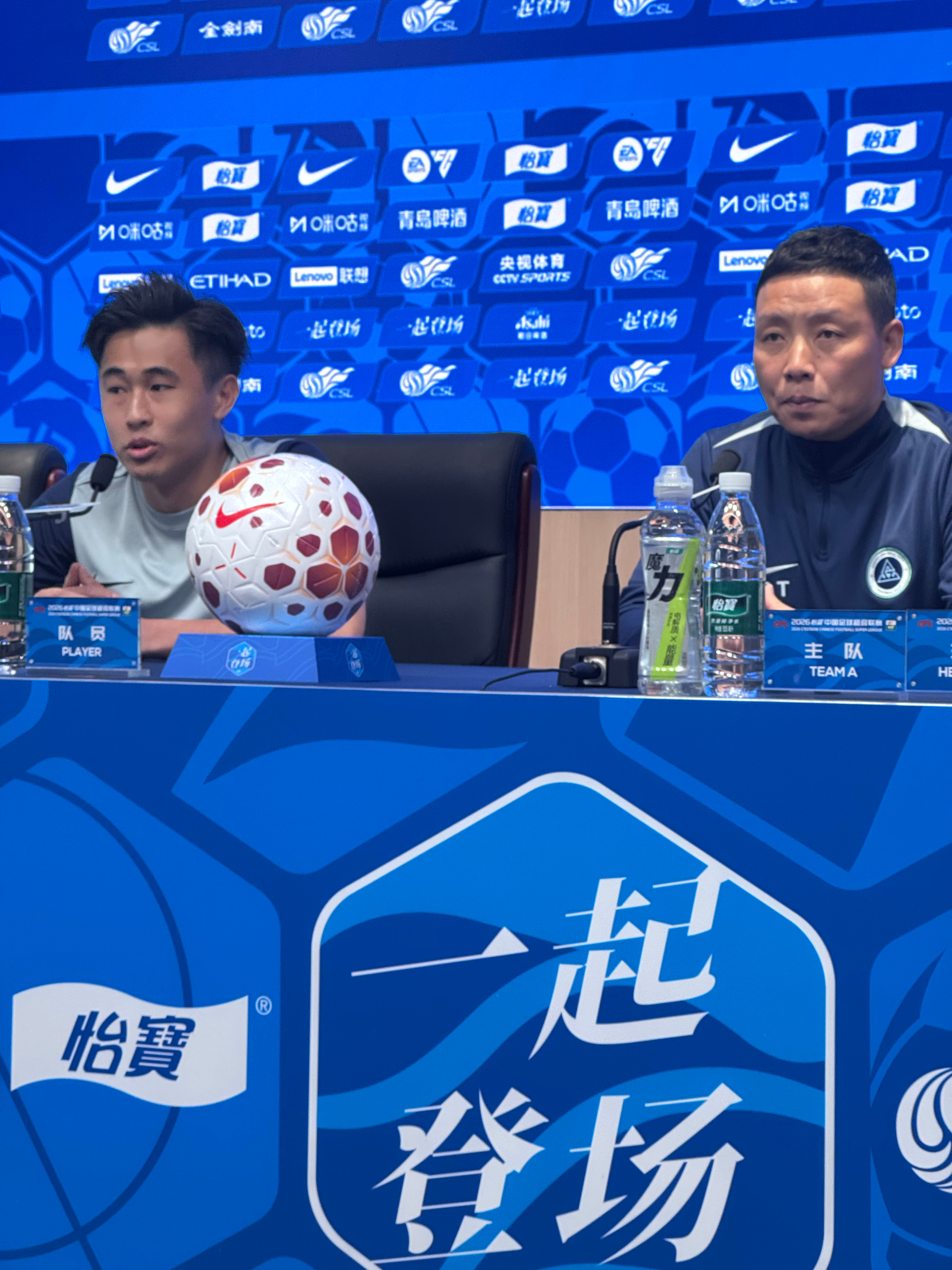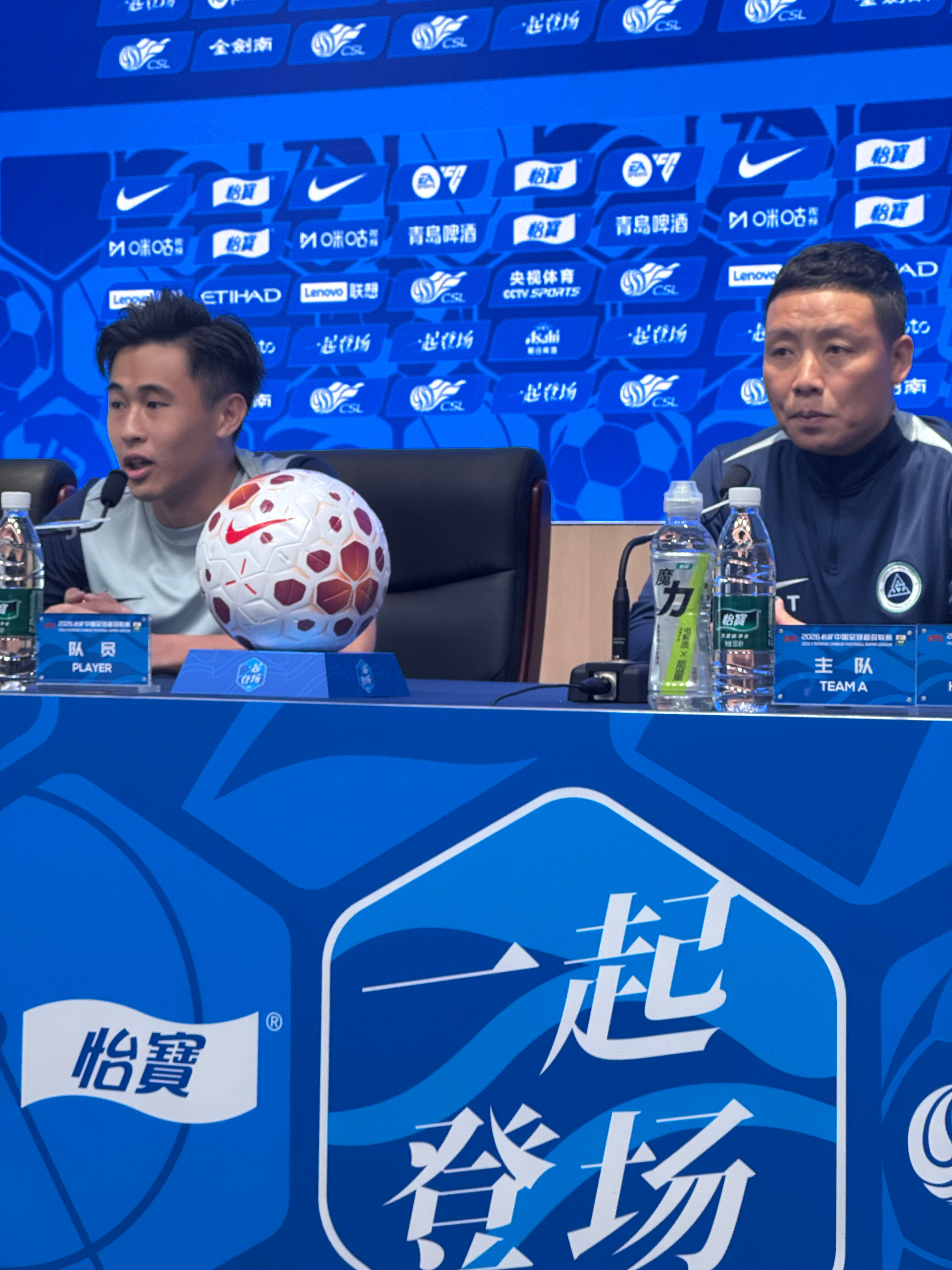 深圳新鹏城 主队赛前发布会正在进行中,主教练陈涛携队员戴伟浚出席。 中超联赛 我