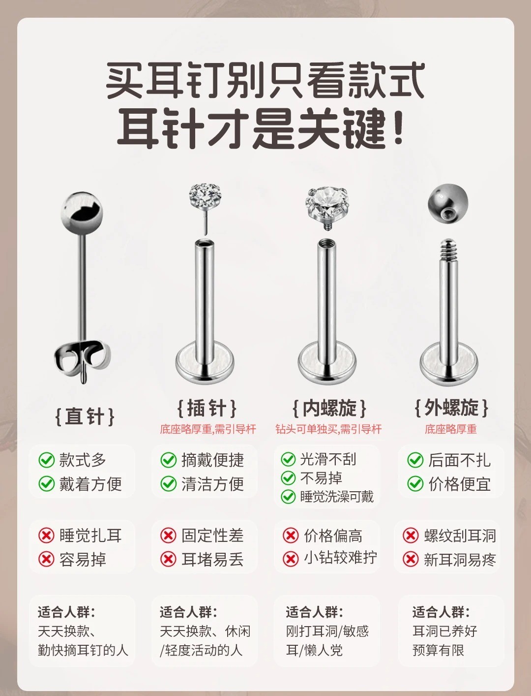 今天一篇讲清楚不同的耳针优、缺点是什么,以及不同脸型怎么选最显脸小,赶快收藏码住