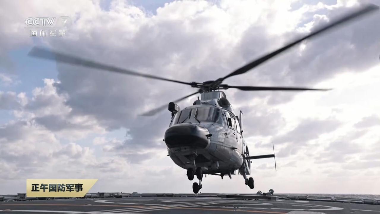 055万吨大驱安庆舰进行舰载机起降部署 可以看出直-9还是主力,看来直-