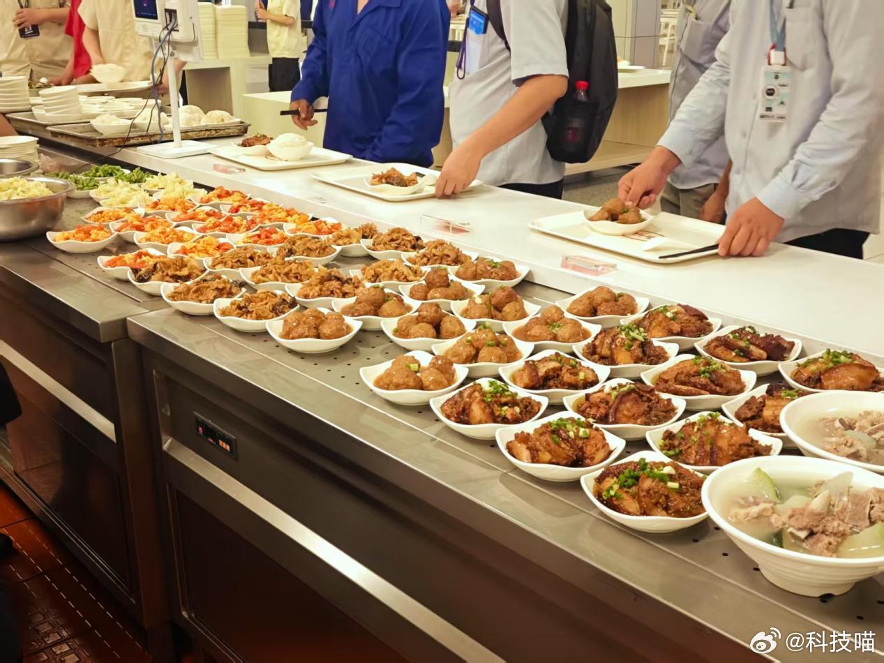 在吃饭方面,有员工餐厅,早餐4元,中晚餐6.5元起,菜品看起来很丰富。