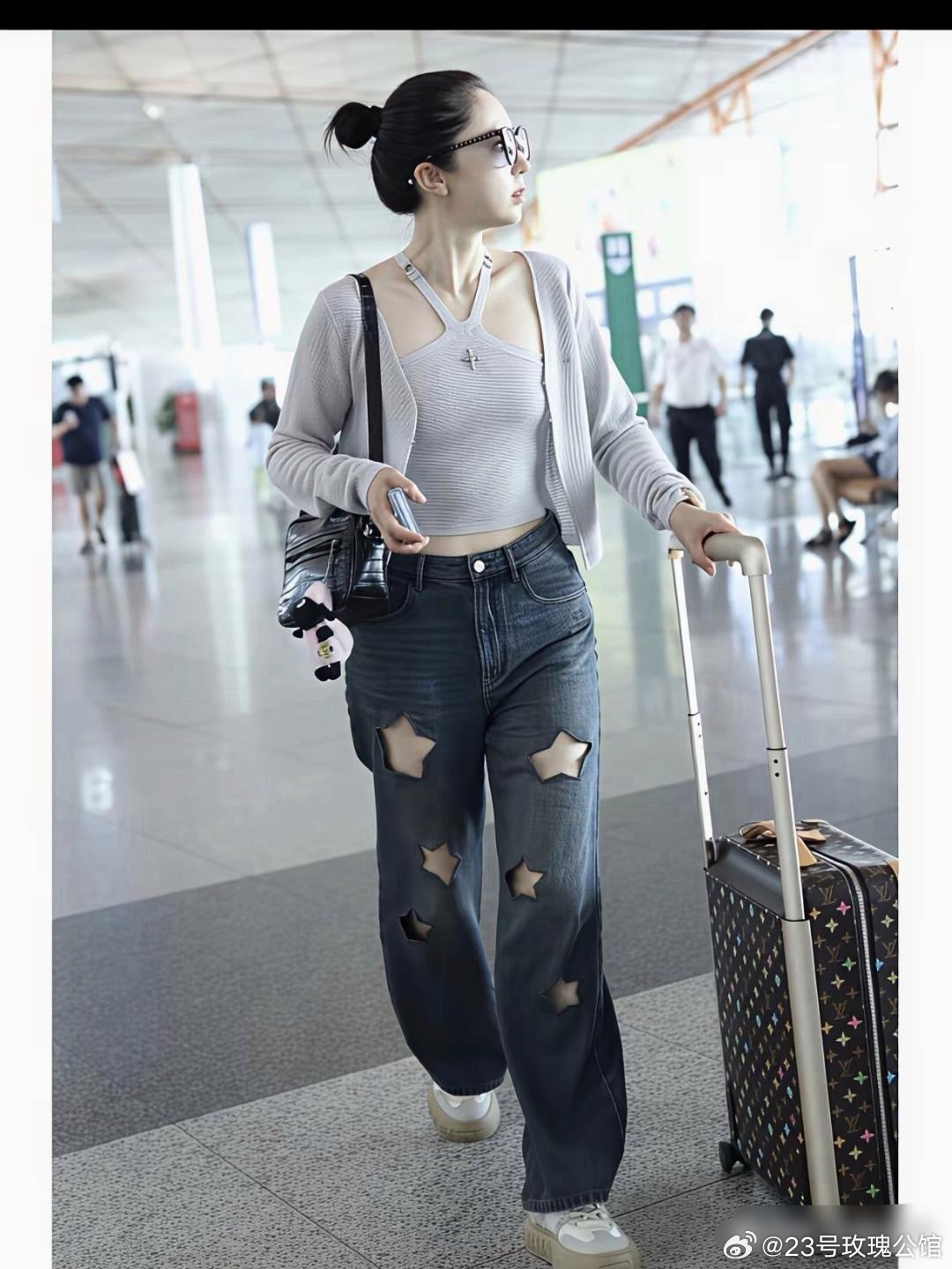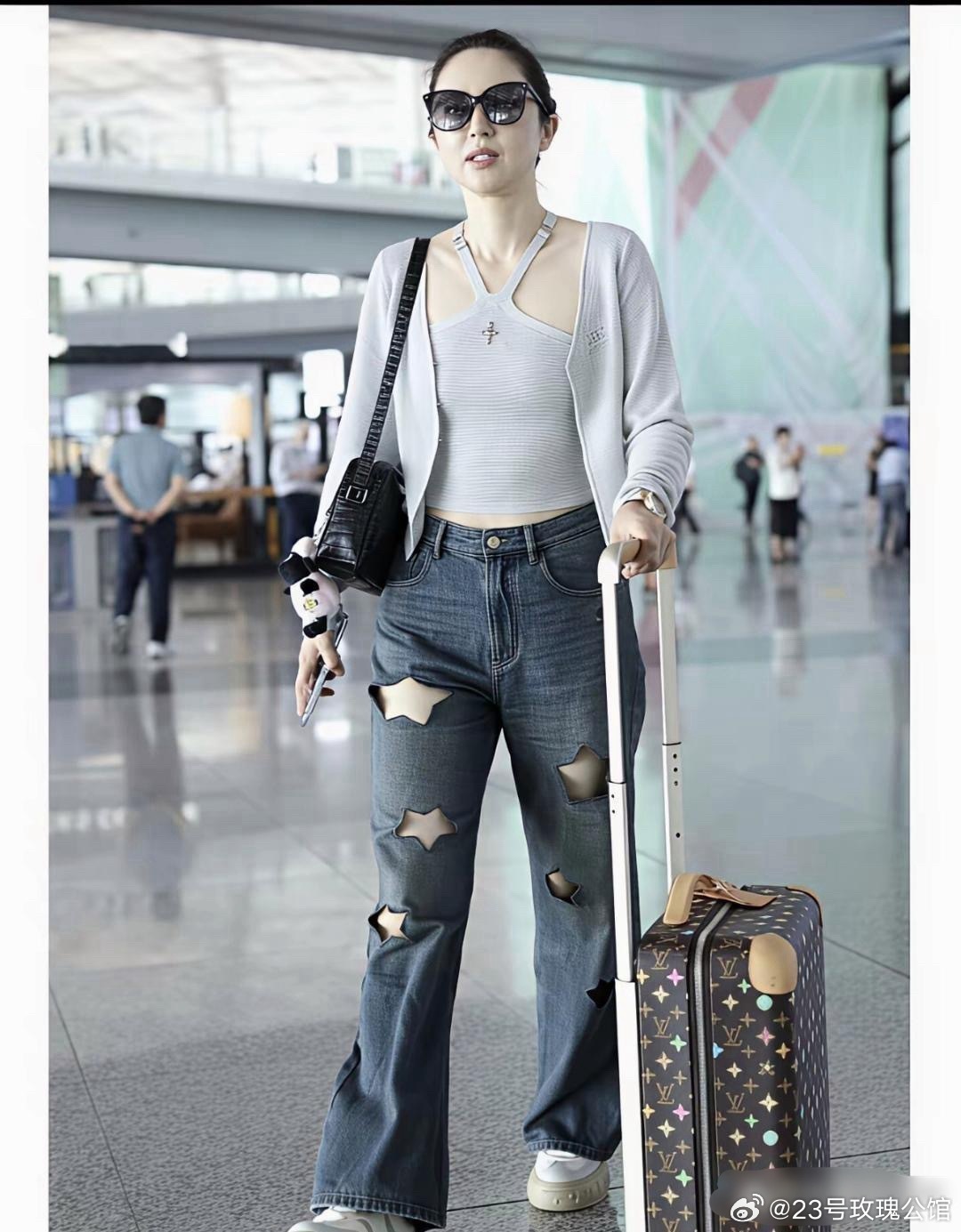 董璇机场照,这星星破洞牛仔裤很潮。