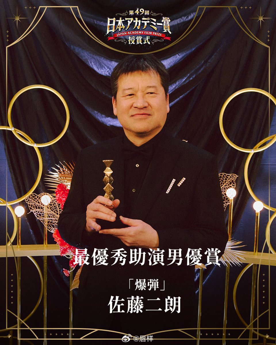 恭喜🎉佐藤二朗凭借电影『爆弹』获得第49届电影学院奖最优秀男配角!其他入围者: