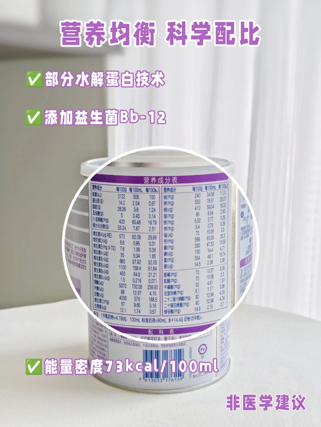 并且它采用的是部分水解蛋白技术,[氛围感R]把难消化的大分子蛋白切成更容易吸收的小分子,还添加了益生菌Bb-12,帮助吸收的同时建立肚肚稳定的环境~口感很清甜,宝宝一下就接受了这个味道!