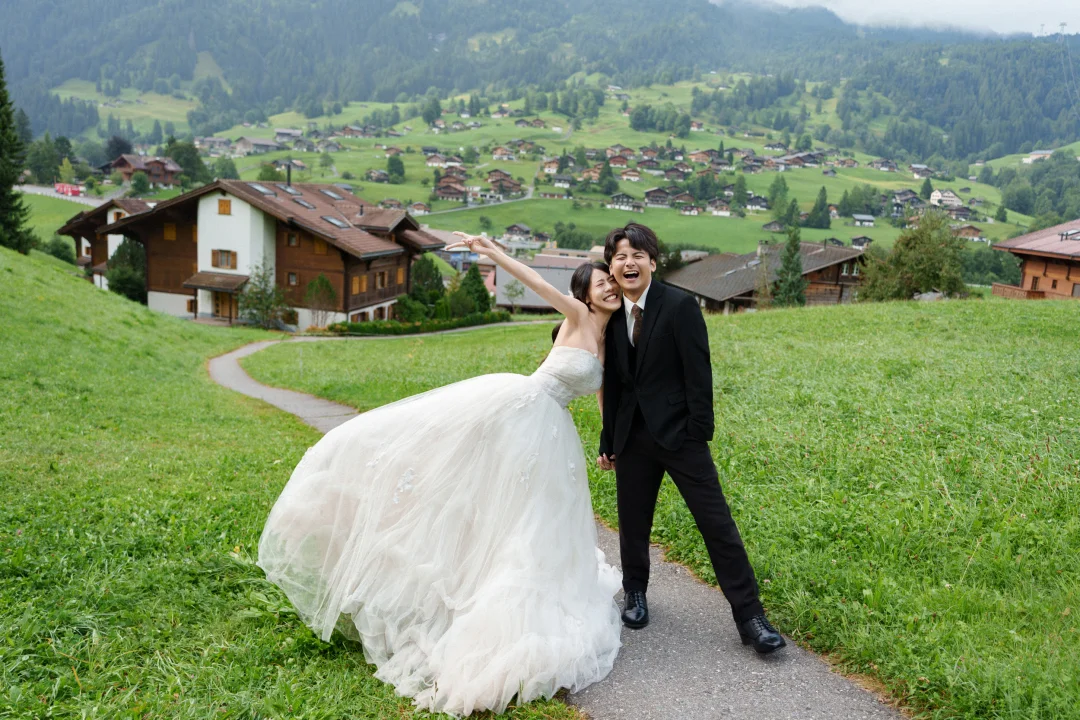 令人心动的爱情瞬间 瑞士摄影师雨遥 瑞士旅拍婚纱 格林瓦德梦幻山坡 胶片婚纱照 无仪式婚礼 一对日本的情侣 很爱笑 很相爱 全天都在欢声笑语中拍摄完