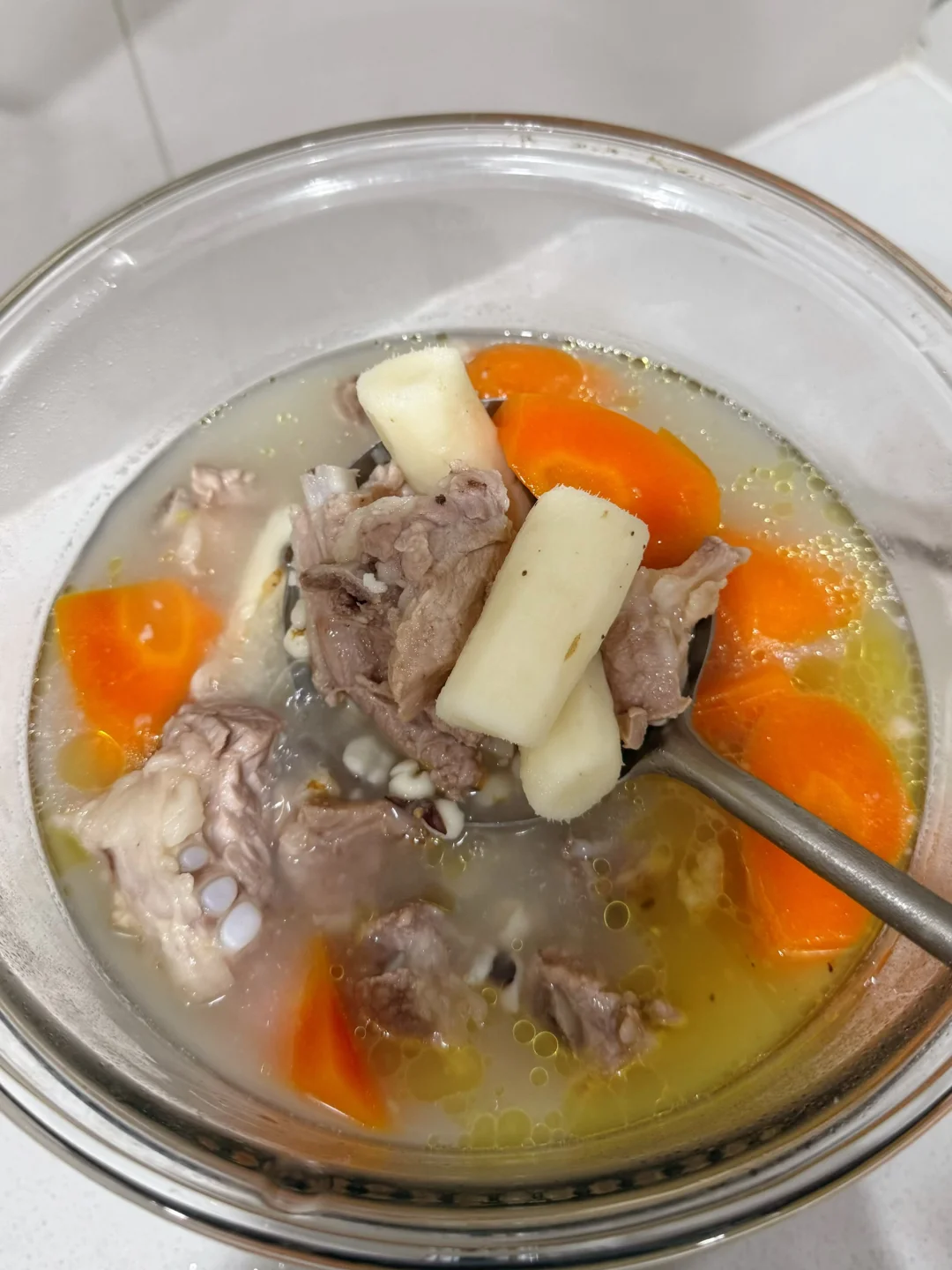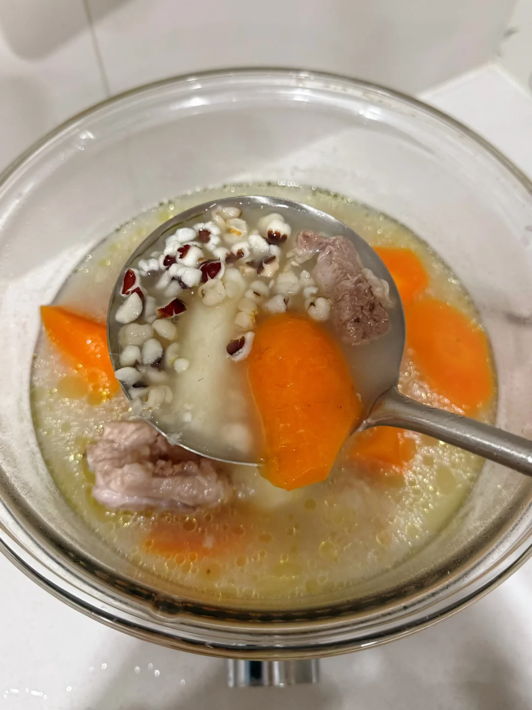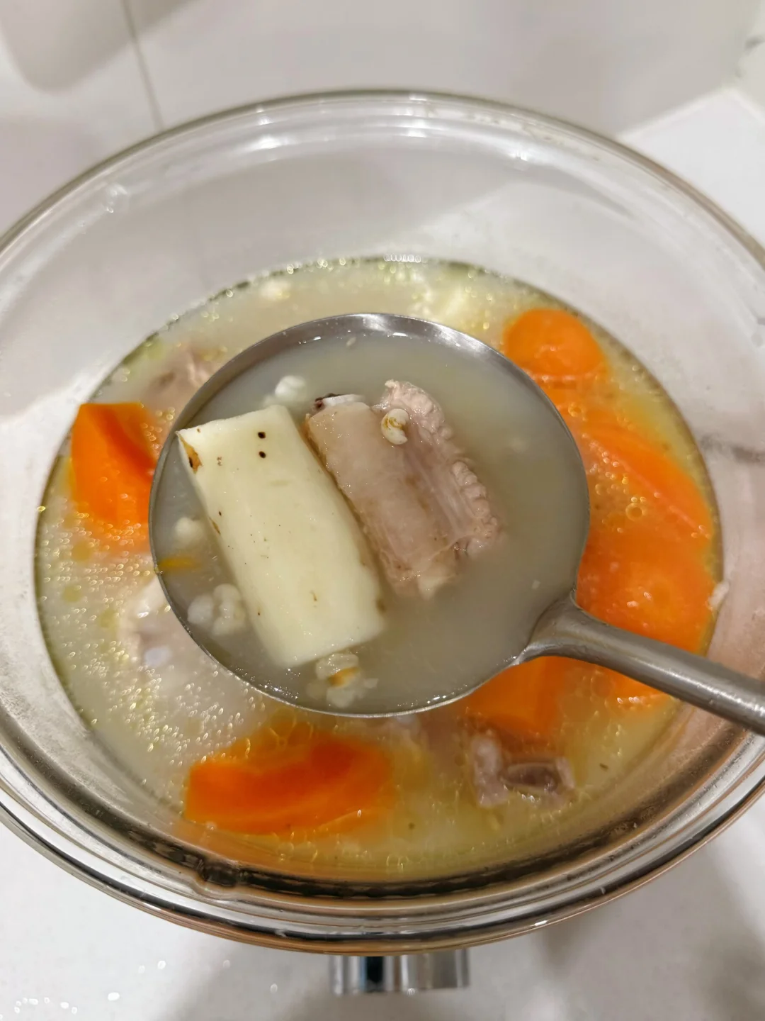 中医说春天要健脾祛湿!薏米是公认的“祛湿神器”,能帮我们把身体里多余的水湿排出去;山药是“脾胃好朋友”,能养胃补气。这两者搭配排骨,既不油腻又能补充营养,喝完感觉整个人都轻盈了!💨