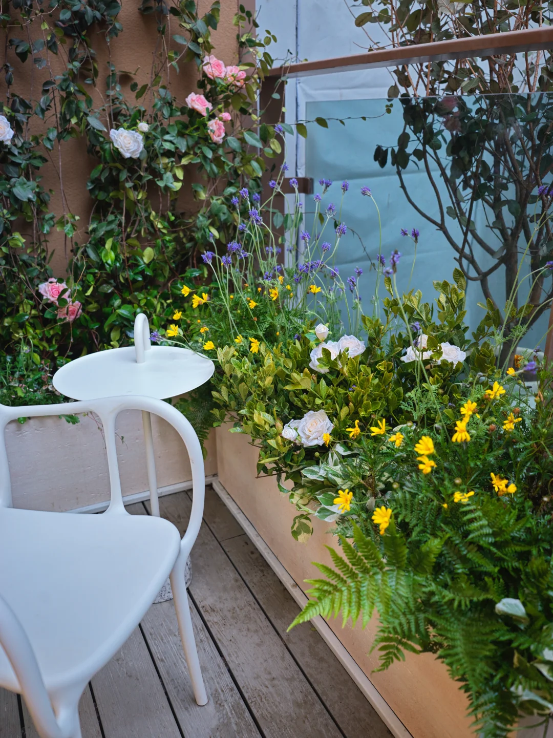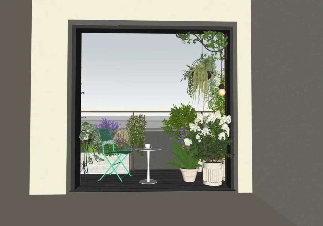 阳台的功能早已不再是晾晒、堆放的边角地,而是室内与自然的温柔过渡区,是可触摸、可沉浸的都市微型花园。 不止观景,更是生活。把咖啡、阅读、下午茶的场景直接搬进花园,让阳台成为“会客厅”与“疗愈角”。 植物搭配避免过度堆砌,保留“呼吸感”,让阳光与风可以自由穿梭,真正实现“在城市里,也能拥有一片属于自己的自然角落”。