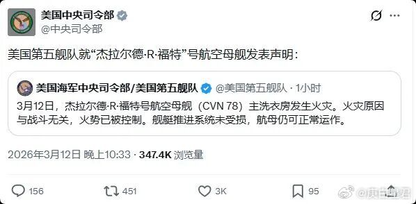 一些事,有时看上去就是这么离奇!当地时间3月12日晚,千呼万呼始出来的伊朗最高领袖终于公开亮相了;身负国仇家恨的穆杰塔巴一开口,就有一股扑面而来凛冽刺骨的杀气,7大要点有4点打破了所有人战争短期结束的幻想。1.“我们将向敌人要求赔偿;如果他们拒绝,我们将按照自己的决定夺取他们同等价值的资产;如果无法做到,我们就会摧毁同等数量的财产。”这呼应了之前一天伊朗总统佩泽希齐扬停战3条件第二条:美以支付战争赔款!而我们都知道,要求支付战争赔款,历来都是胜者才有的权力。2.“我向所有人保证,我们绝不会放弃为烈士的鲜血复仇。”3.“伊朗应该继续封锁霍尔木兹海峡这一杠杆手段。”4.“在敌人经验不足且高度脆弱的地区进行了其他战线的研究;如果战争状态持续,并且被认为合适,这些战线可能会被激活。”简而言之,伊朗会开辟其他战线。而在穆杰塔巴讲话没多久,有意思的一幕出现了。当地时间3月12日,美国中央司令部表示,一架美国KC-135空中加油机在伊拉克西部坠毁。当地时间3月12日,美国海军中央司令部表示,当天“福特”号航空母舰主洗衣房发生火灾。接连2条美军关键战损消息,还都是高价值目标,这是老美嫌穆杰塔巴对伊朗抵抗力量士气激发还不够吗?时间上的巧合,让人不得不联想,这是老美在为伊朗穆杰塔巴“献礼”。不过与美国声明是操作不当,发生碰撞事故导致加油机坠毁不同;伊朗武装部队哈塔姆·安比亚中央司令部发布消息称:这架美国军用加油机,是被伊拉克抵抗组织发射的导弹击落,机组人员全部死亡。不知道这一次6名机组人员,会不会被美国算入“阵亡”呢?从过去几天美国大兵阵亡、意外死亡名单公布后,被网友们一眼总结出了规律:非白人“不配”阵亡。这或许才是福特号洗衣机房起火的真相。毕竟“牛马”也不是这么用的,从欧洲跑到加勒比海干脏活或许还可以说为美国国家利益。可是又折腾回中东,这算啥?完全就是为以色列人卖命。有四等人美海军陆战队大兵在国会“抗议”当显眼包,那天怒人怨的水兵,搞点趣味小活动,也是很自然的事。当然我们也别指望美以会受不了内外压力,为世界和平捏鼻子认怂。