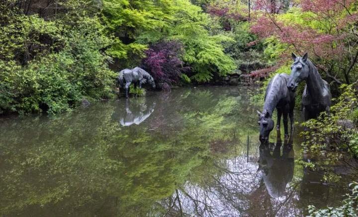 继续前行,途经洗马池,石马静静伫立,相传这里曾是越王勾践屯兵时洗马的地方,还流传着“馈鱼退敌”的传奇故事。