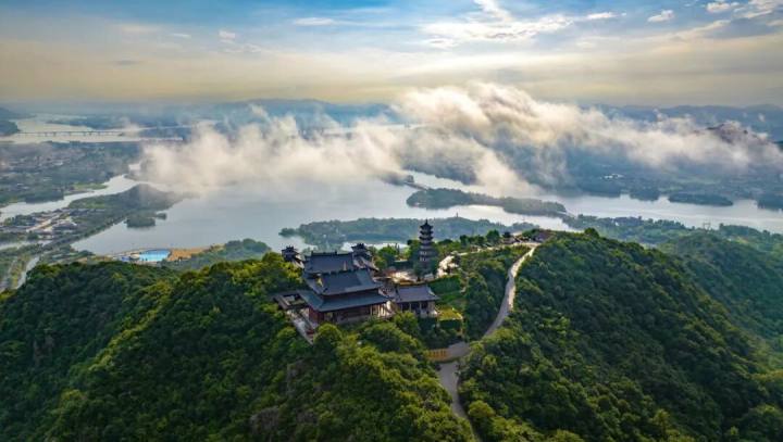莲华寺,被誉为“江南悬空寺”的古寺,殿宇楼台紧贴峭壁,依山就势,宛若从山崖中生长出来一般,殿宇错落,层叠而上,远观如一件精雕细琢的浮雕艺术品。