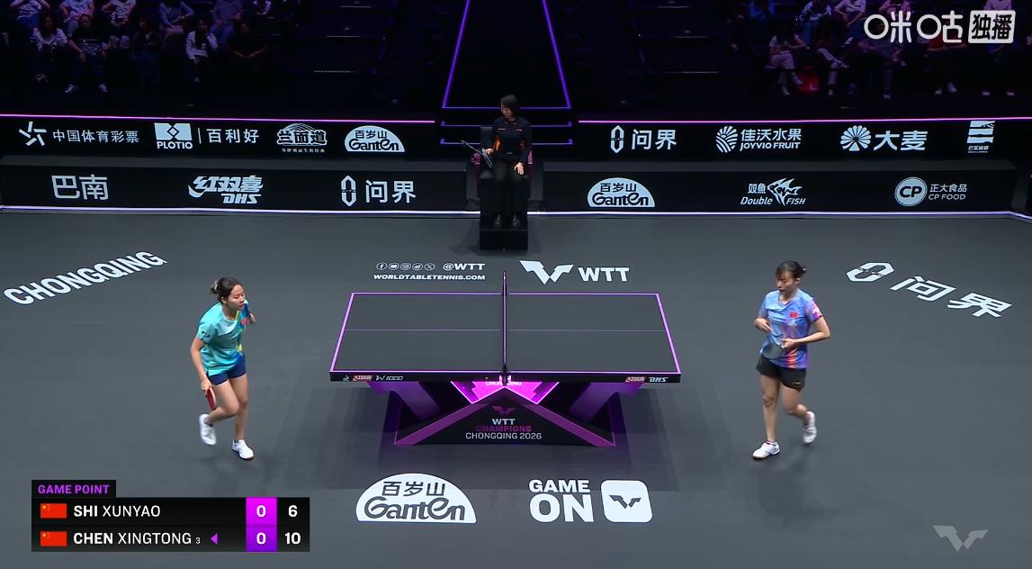 陈幸同的速度快,石洵瑶的力量重, 双方各有所长,特点非常明显, 就看谁的单板质量
